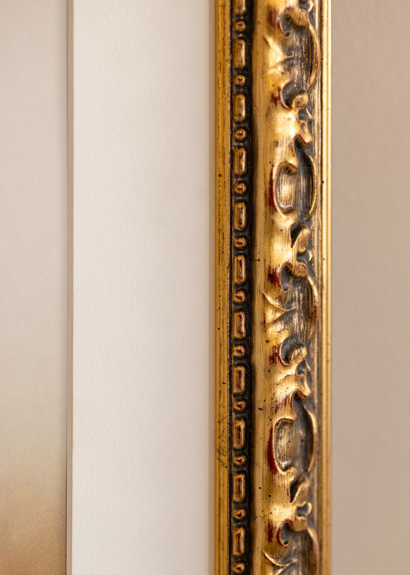 Porta-retrato Freyja Ouro é uma moldura elegante e estilosa que dá às suas fotos uma moldura luxuosa. Com sua superfície dourada e ornamentos intrincados, torna-se um elemento chamativo em qualquer ambiente. O acabamento antigo, com detalhes patinados escuros e toques sutis de vermelho, intensifica o caráter rústico da moldura e confere-lhe um charme atemporal.