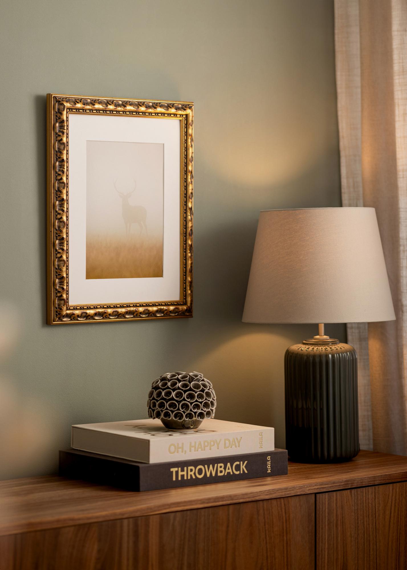 Esta moldura possui uma borda de 38 mm de largura e uma profundidade de 34 mm, proporcionando uma sensação robusta e sólida. Fabricada em pinho, oferece tanto durabilidade quanto uma beleza natural. O Porta-retrato Freyja Ouro é perfeito para realçar suas fotos ou obras de arte favoritas, sejam elas fotos de família, paisagens ou arte abstrata.