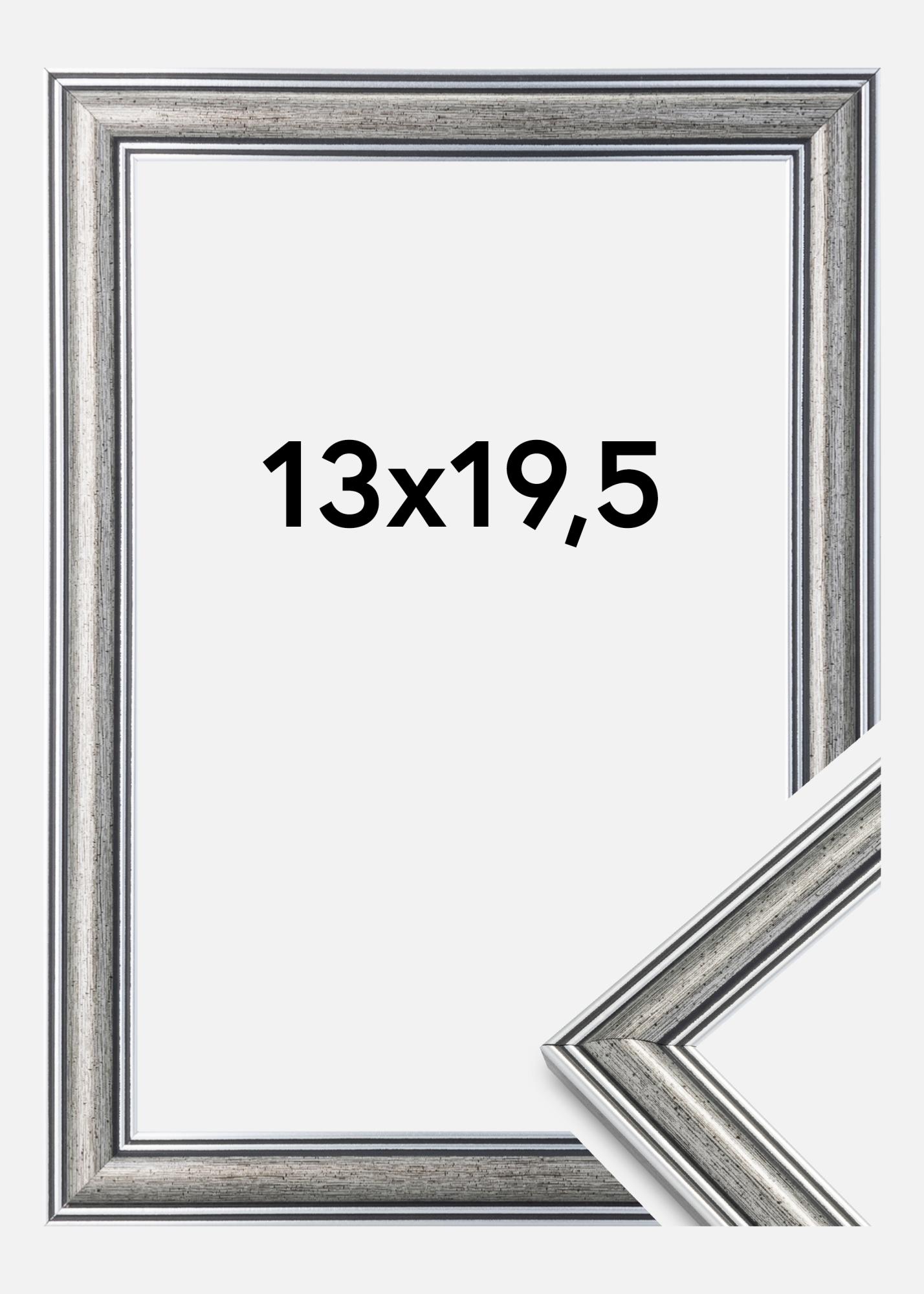 Frigg é uma moldura prateada com linhas pretas e detalhes pontilhados em preto. É perfeita quando procura uma moldura prateada tradicional e ampla que combine com vários tipos de imagens e ambientes.