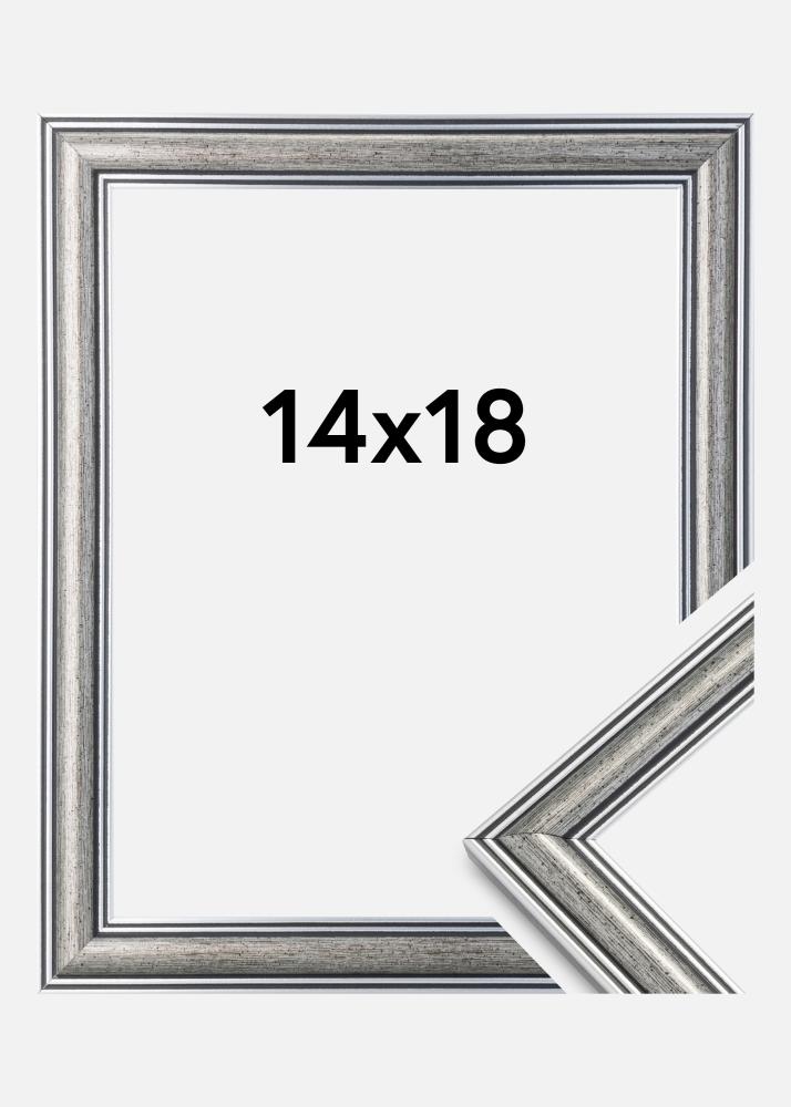 Frigg é uma moldura prateada com linhas pretas e detalhes pontilhados em preto. É perfeita quando procura uma moldura prateada tradicional e ampla que combine com vários tipos de imagens e ambientes.