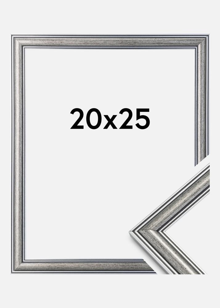 Frigg é uma moldura prateada com linhas pretas e detalhes pontilhados em preto. É perfeita quando procura uma moldura prateada tradicional e ampla que combine com vários tipos de imagens e ambientes.