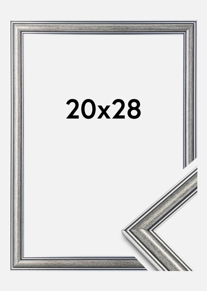 Frigg é uma moldura prateada com linhas pretas e detalhes pontilhados em preto. É perfeita quando procura uma moldura prateada tradicional e ampla que combine com vários tipos de imagens e ambientes.