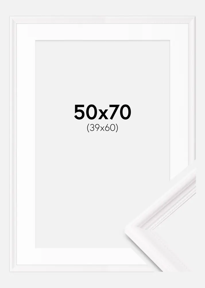 Esta elegante moldura tem um acabamento branco fosco e é perfeita para fotos no tamanho 40x61 cm. Com uma largura de 20 mm e uma profundidade de 17 mm, oferece uma moldura elegante.