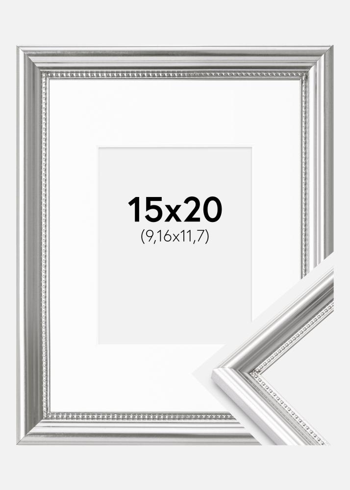 Moldura Gala Prateado 15x20 cm - Passe-partout Branco 4x5 inches