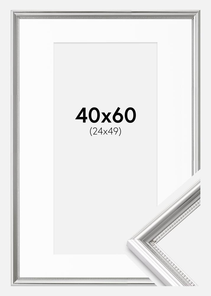 Moldura Gala Prateado 40x60 cm - Passe-partout Branco 25x50 cm