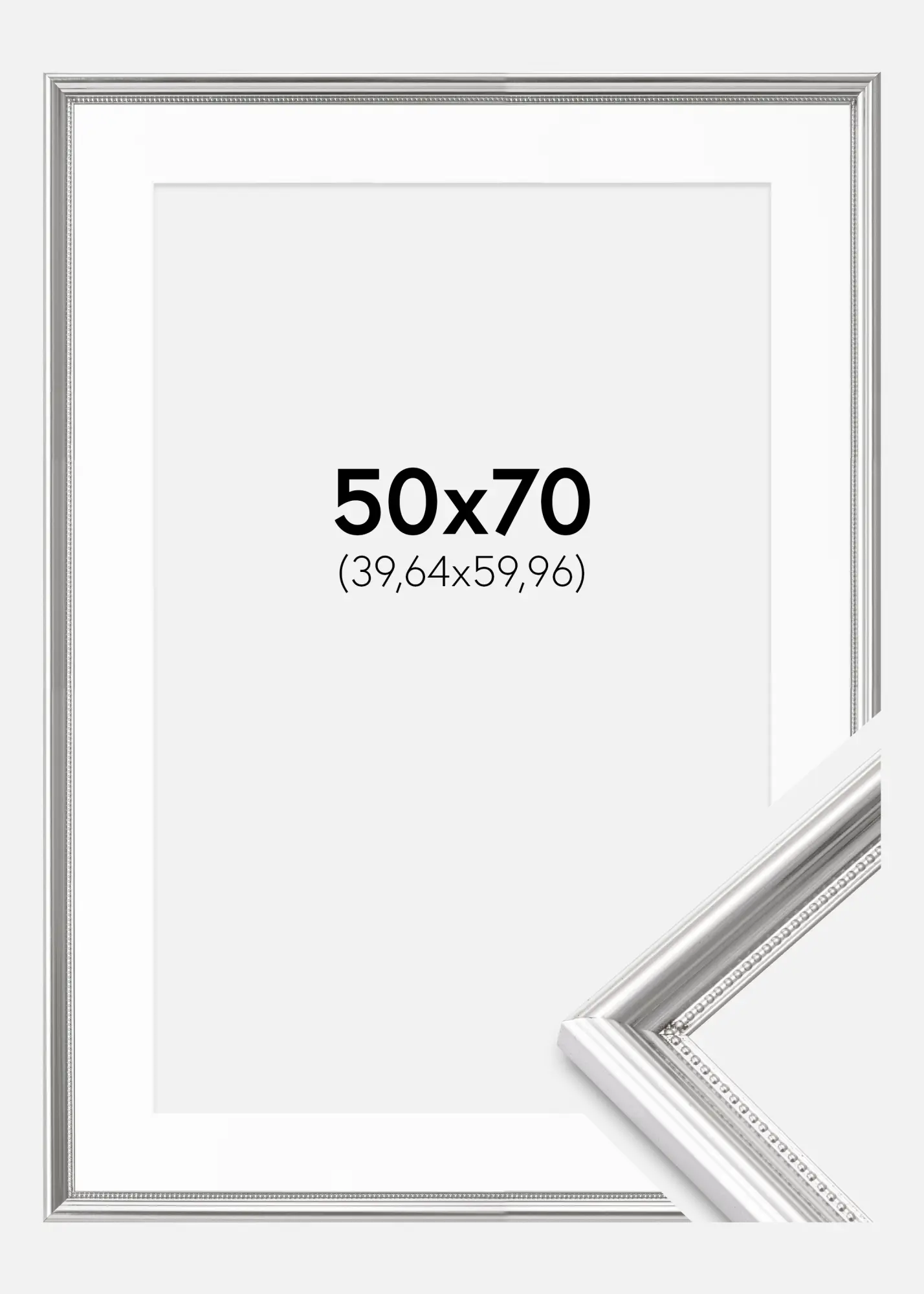 Moldura Gala Prateado 50x70 cm - Passe-partout Branco 16x24 inches