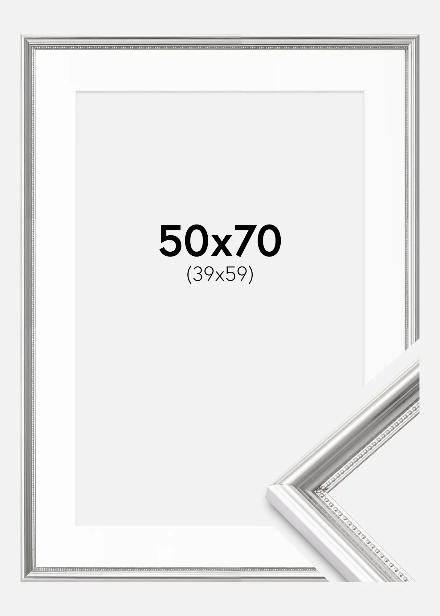 Moldura Gala Prateado 50x70 cm - Passe-partout Branco 40x60 cm
