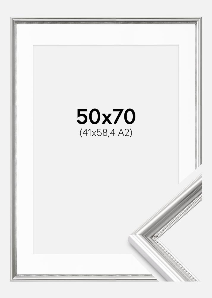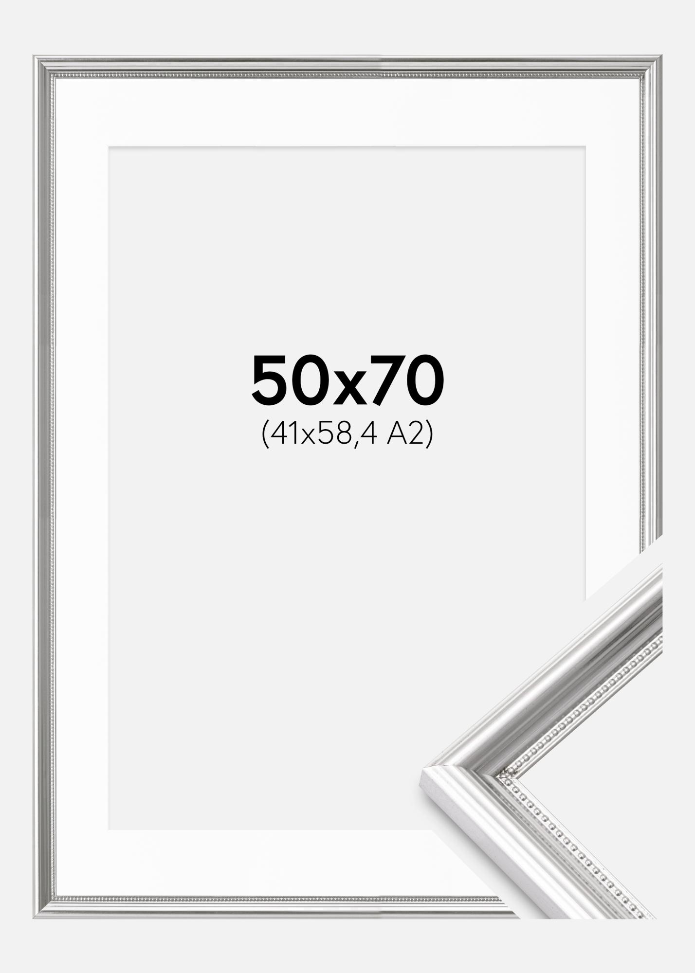 Moldura Gala Prateado 50x70 cm - Passe-partout Branco 42x59,4 cm (A2)