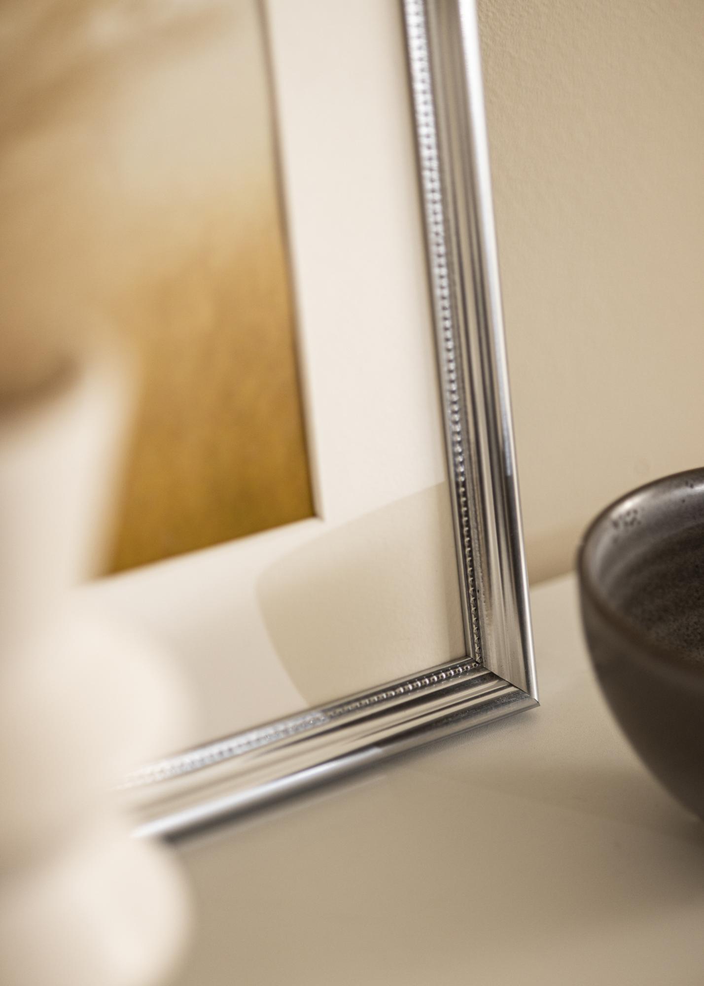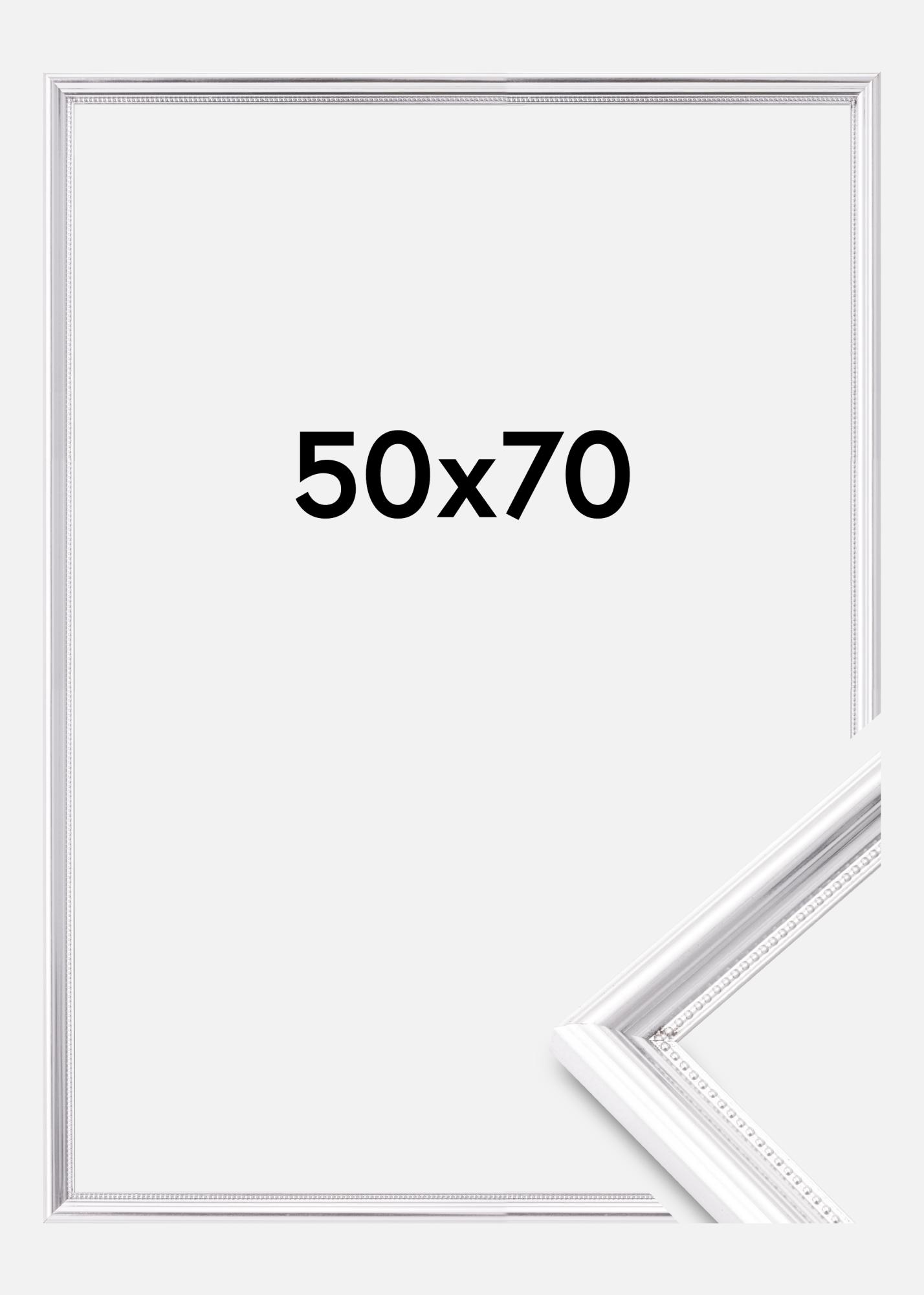 Dê às suas paredes um toque de elegância com esta moldura de fotos na cor prateada no tamanho 50x70 cm. Com seu perfil de moldura de 20 mm e profundidade de 17 mm, esta moldura combina design clássico com detalhes modernos. A superfície brilhante reflete a luz lindamente e adiciona uma sensação de luxo à sua casa.
