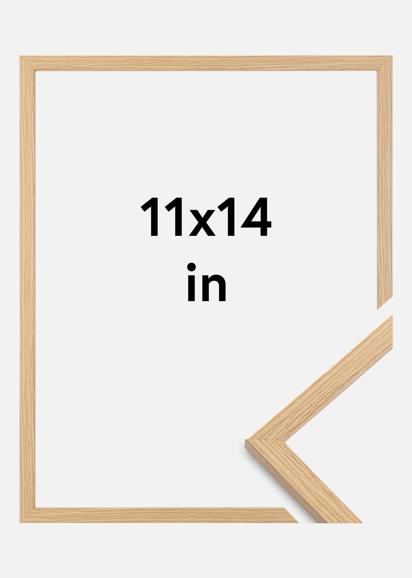 Esta é uma moldura fina que encaixa-se perfeitamente quando quer deixar todo o foco no motivo! A moldura tem 13 mm de profundidade e 13 mm de largura, o que significa que ela tem um design elegante, mas sólido. A moldura é feita de pinho e numa cor de carvalho. Na parte de trás, há suportes de parede para pendurar tanto na horizontal quanto na vertical.