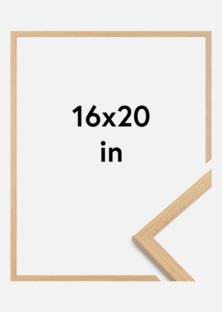 Esta é uma moldura fina que encaixa-se perfeitamente quando quer deixar todo o foco no motivo! A moldura tem 13 mm de profundidade e 13 mm de largura, o que significa que ela tem um design elegante, mas sólido. A moldura é feita de pinho e numa cor de carvalho. Na parte de trás, há suportes de parede para pendurar tanto na horizontal quanto na vertical.