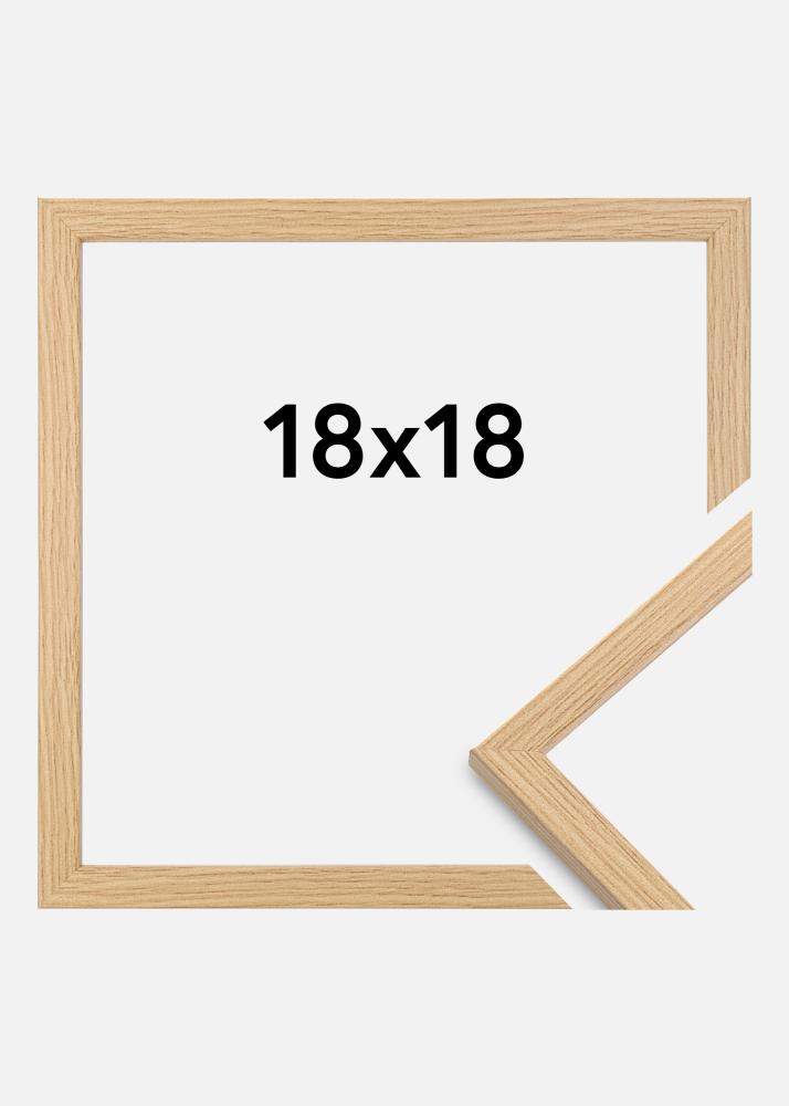 Esta é uma moldura fina que encaixa-se perfeitamente quando quer deixar todo o foco no motivo! A moldura tem 13 mm de profundidade e 13 mm de largura, o que significa que ela tem um design elegante, mas sólido. A moldura é feita de pinho e numa cor de carvalho. Na parte de trás, há suportes de parede para pendurar tanto na horizontal quanto na vertical.