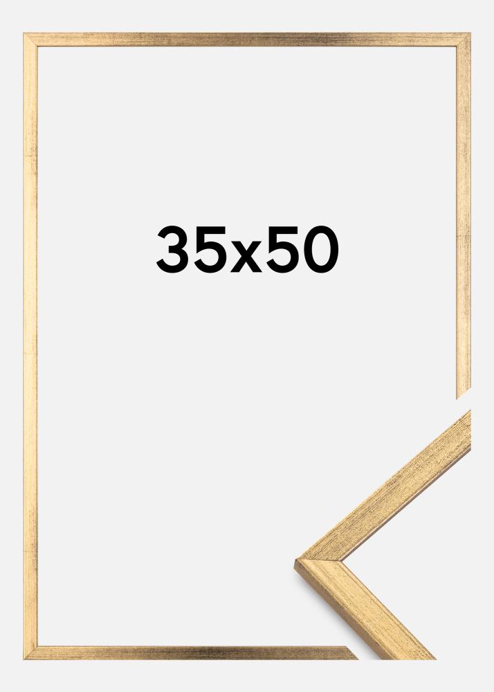 Elegante moldura de madeira com um perfil reto que possui uma sensação vintage adorável e uma superfície dourada desgastada com manchas pretas. Com o seu perfil suave dourado, Galant Dourada é uma moldura que combina com quase todos os tipos de imagens.
