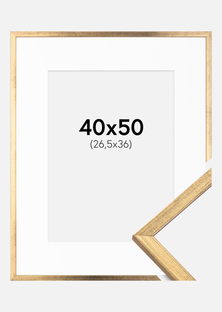 Moldura Galant Dourado 40x50 cm - Passe-partout Branco 27,5x37 cm