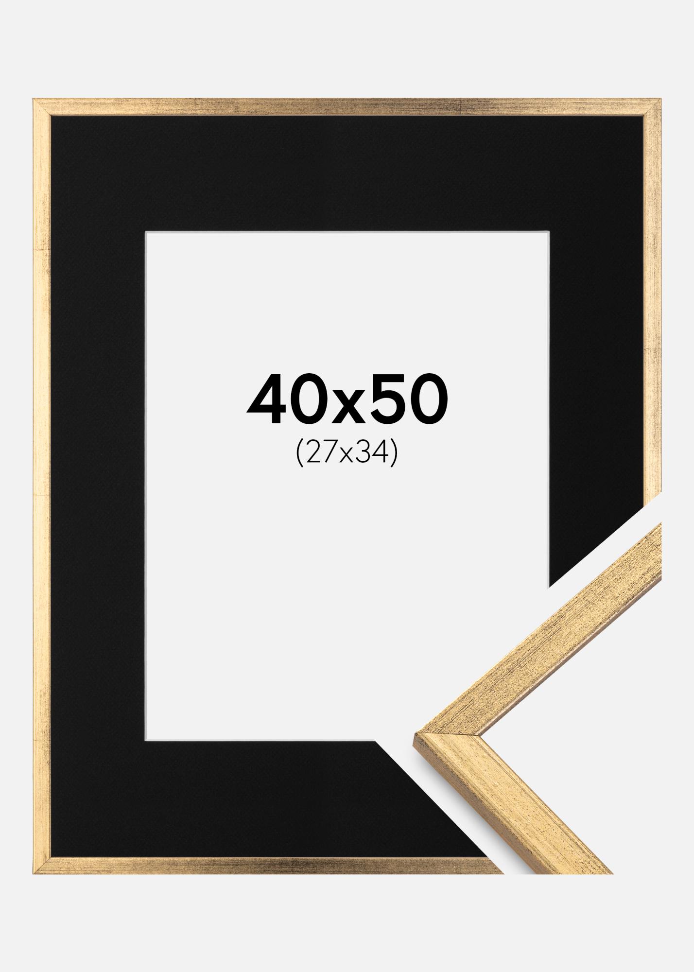 Moldura Galant Dourado 40x50 cm - Passe-partout Preto 28x35 cm
