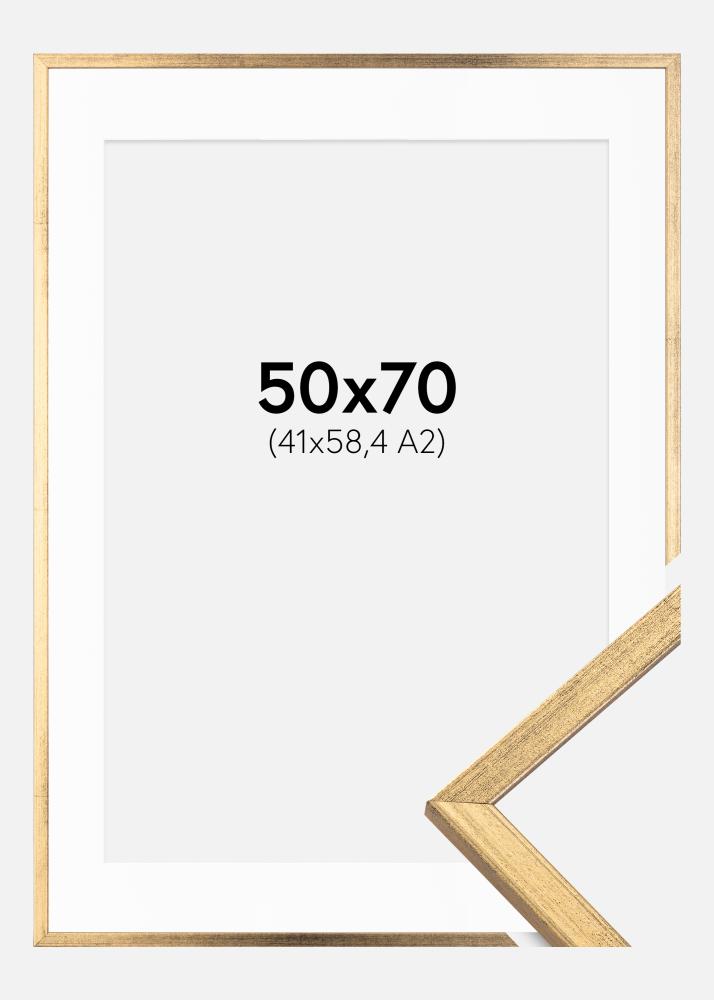 Moldura Galant Dourado 50x70 cm - Passe-partout Branco 42x59,4 cm (A2)