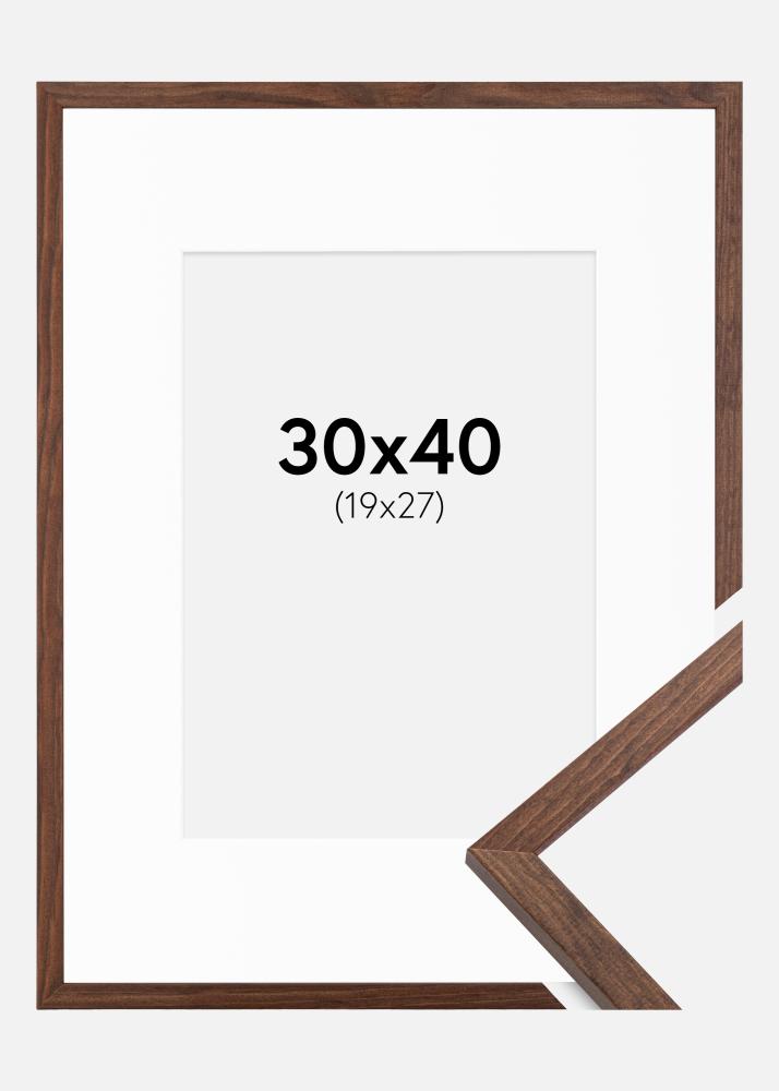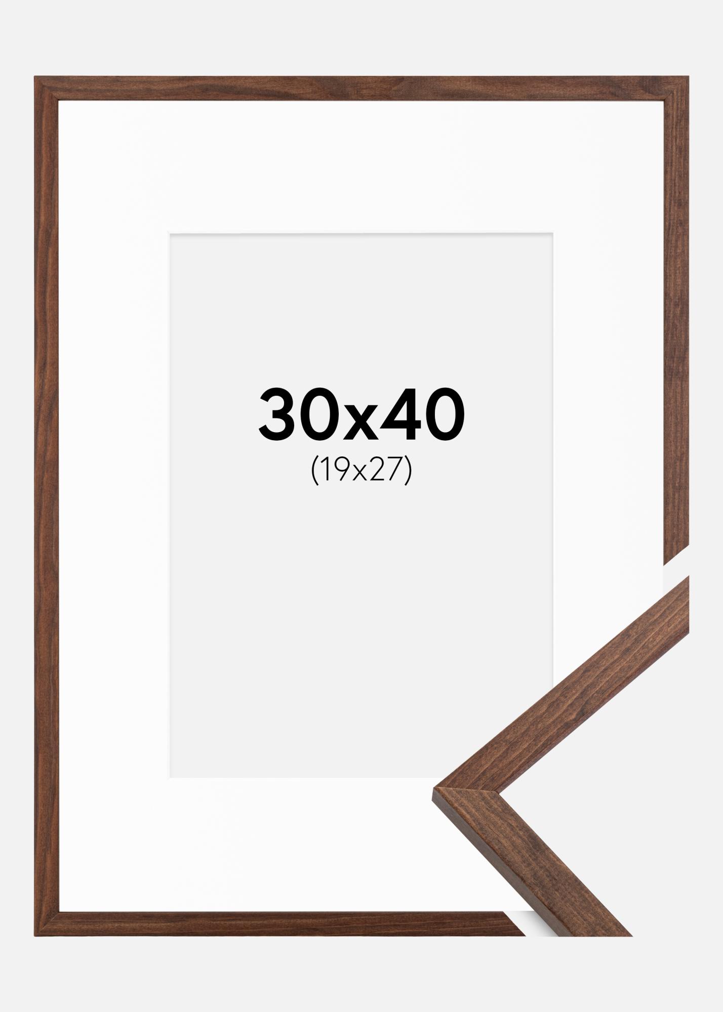 Moldura Galant Nogueira 30x40 cm - Passe-partout Branco 20x28 cm