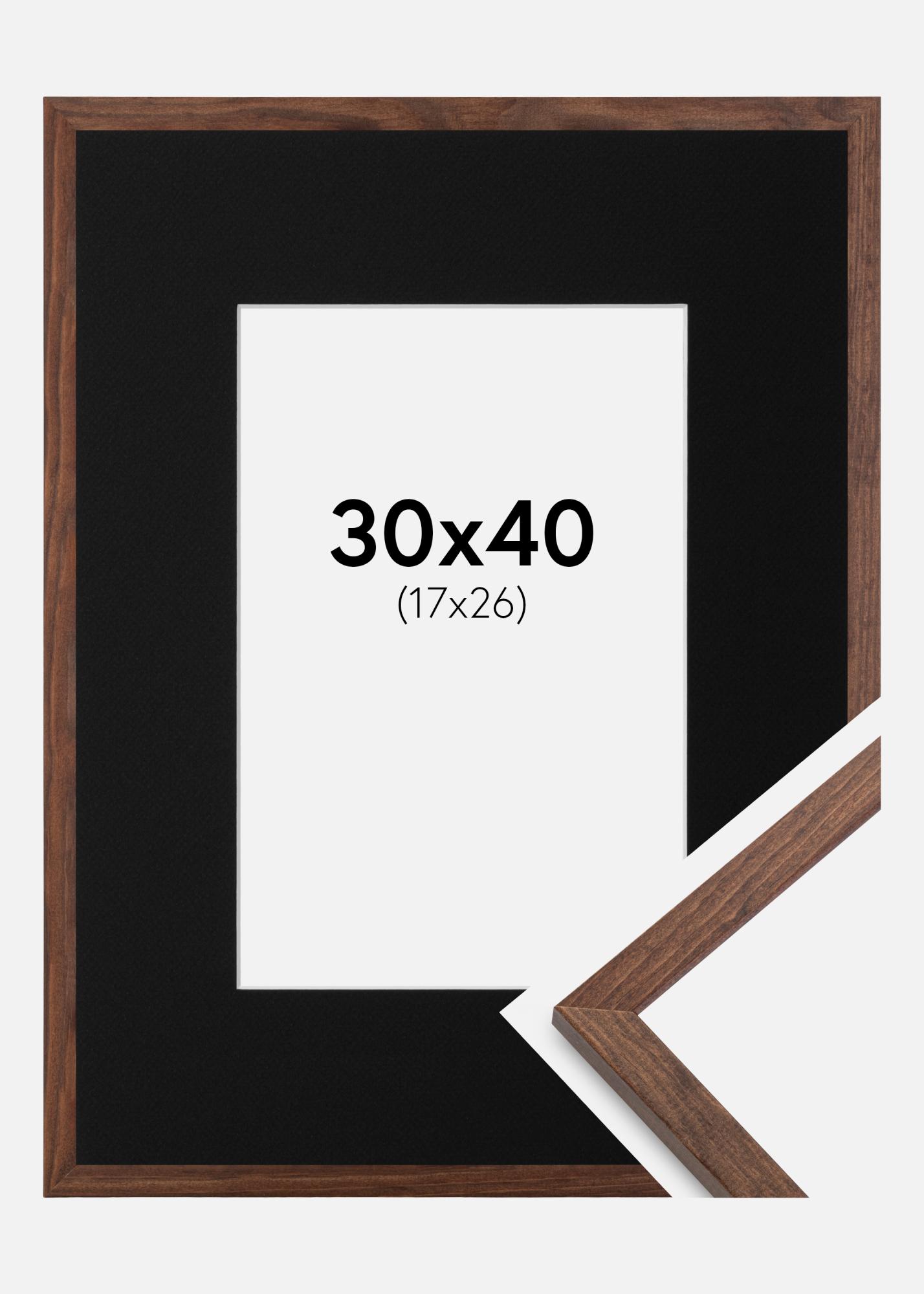 Moldura Galant Nogueira 30x40 cm - Passe-partout Preto 18x27 cm