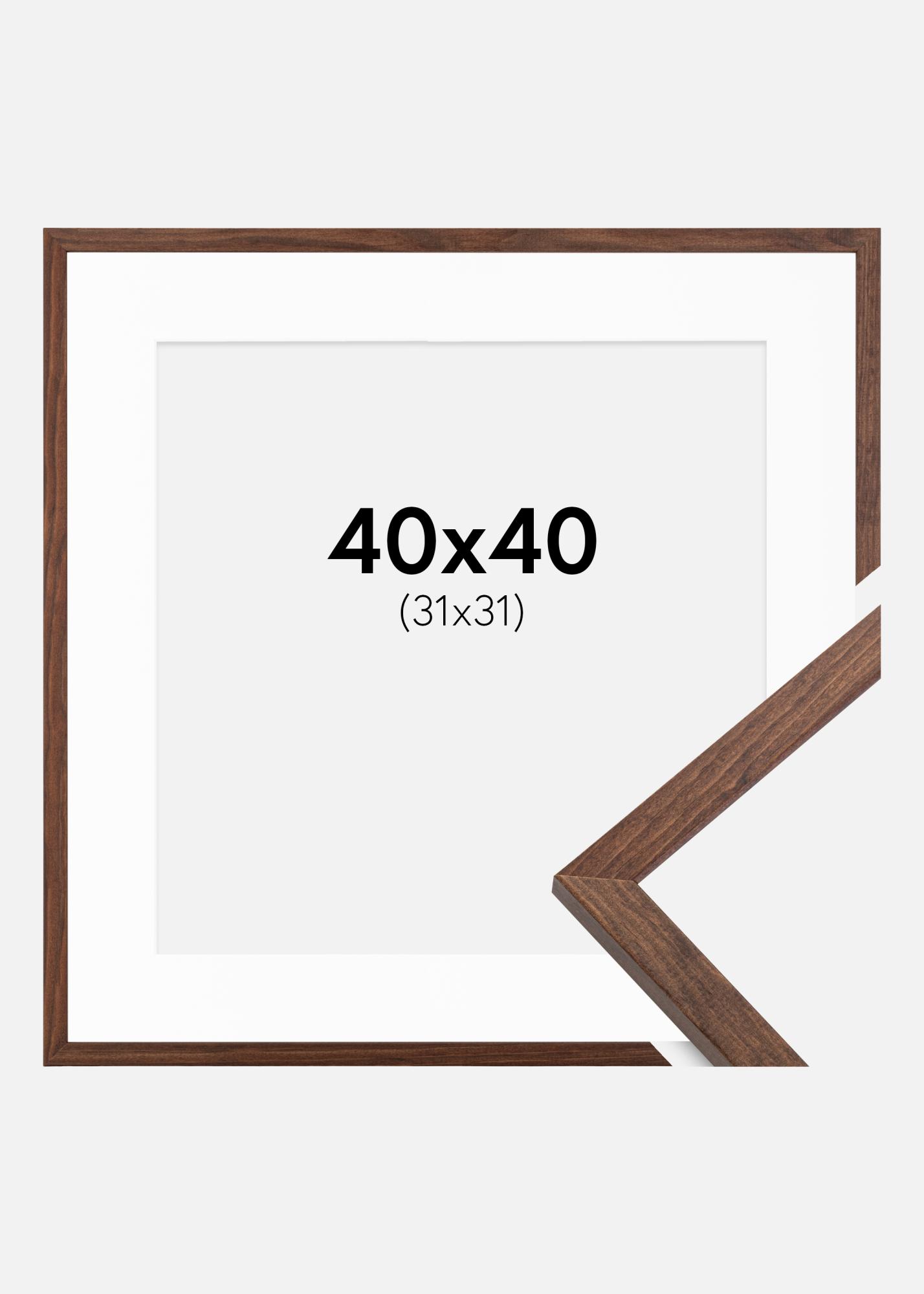 Moldura Galant Nogueira 40x40 cm - Passe-partout Branco 32x32 cm