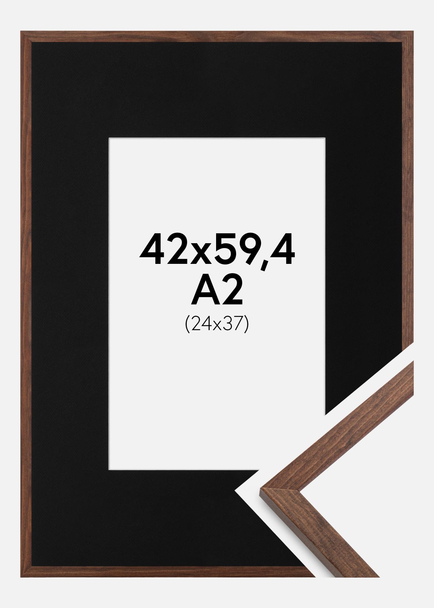 Moldura Galant Nogueira 42x59,4 cm (A2) - Passe-partout Preto 25x38 cm