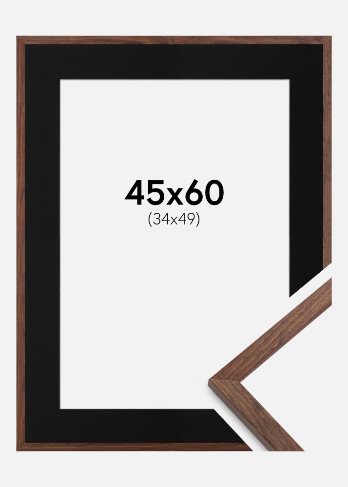 Moldura Galant Nogueira 45x60 cm - Passe-partout Preto 35x50 cm