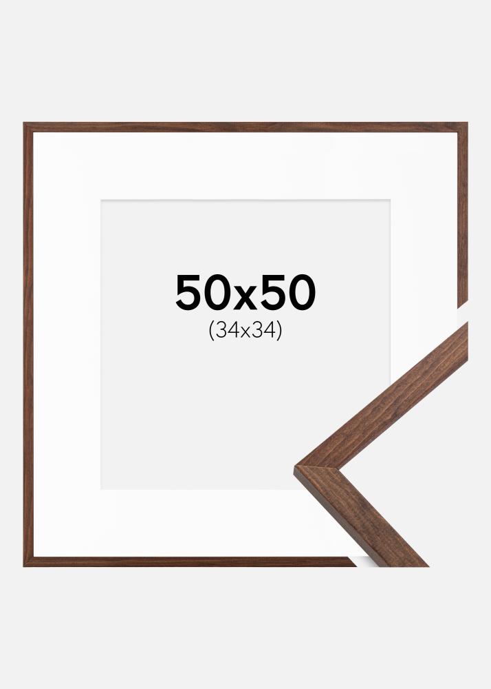 Moldura Galant Nogueira 50x50 cm - Passe-partout Branco 35x35 cm