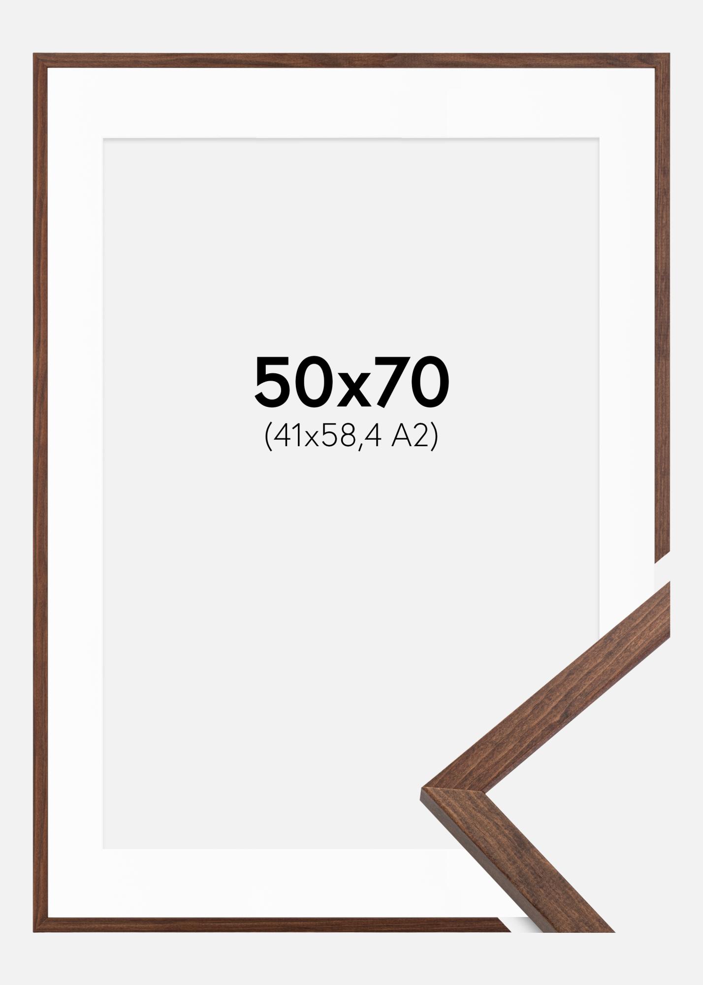 Moldura Galant Nogueira 50x70 cm - Passe-partout Branco 42x59,4 cm (A2)