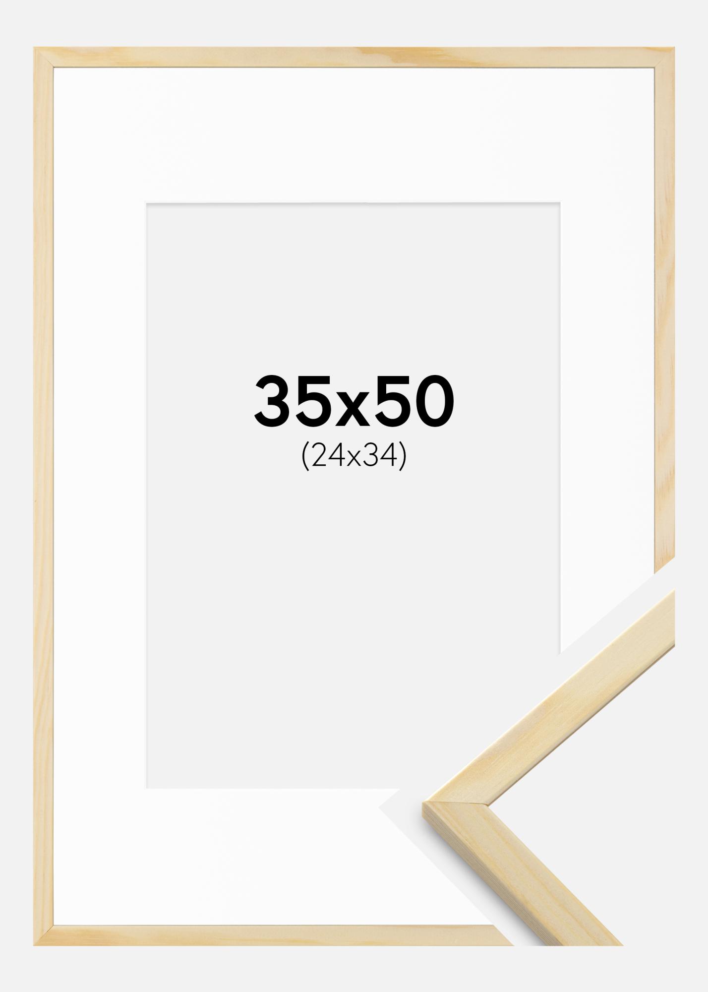 Moldura Galant Pinho 35x50 cm - Passe-partout Branco 25x35 cm