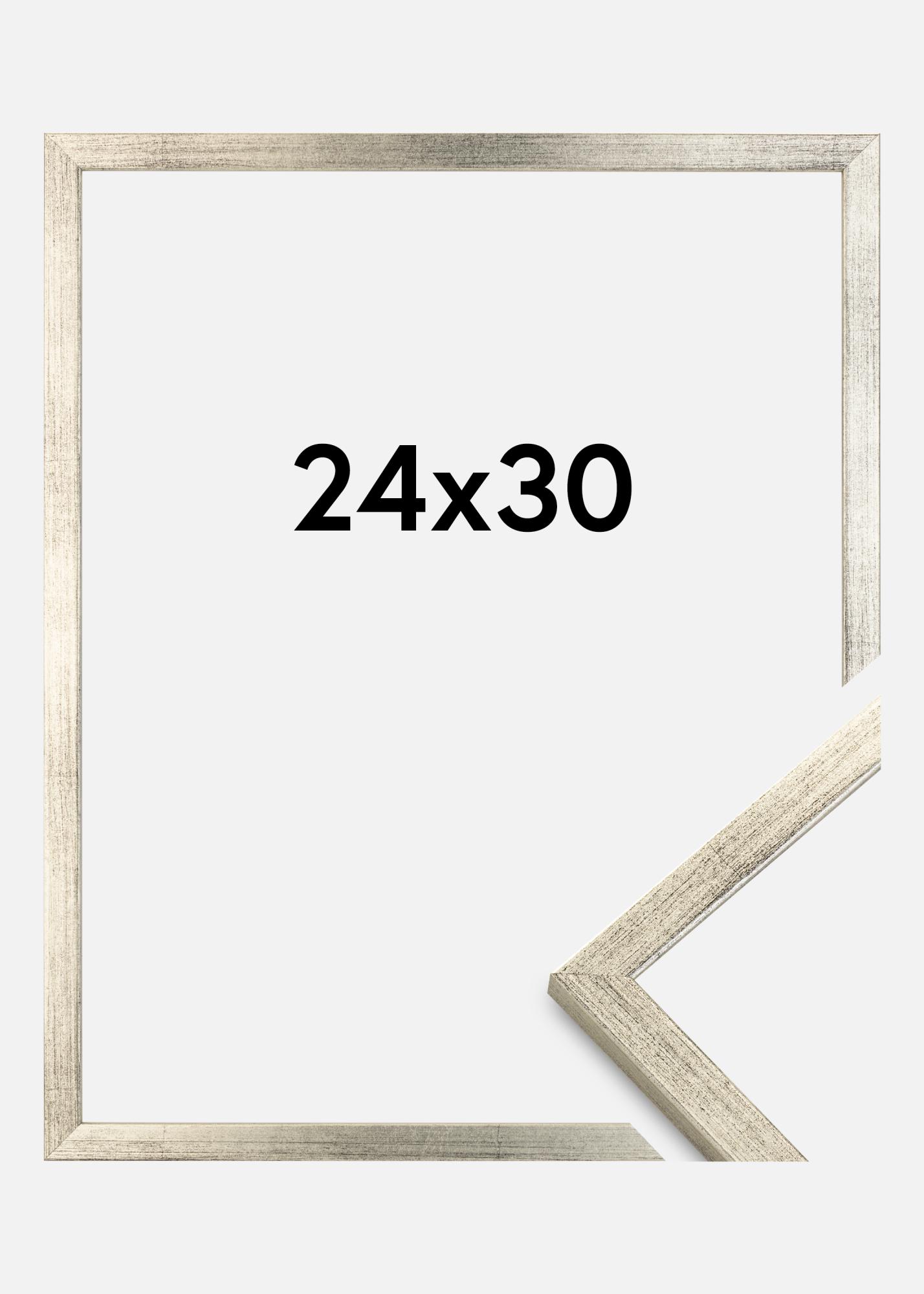 Elegante moldura de madeira com um perfil reto que possui uma sensação vintage adorável e uma superfície prateada desgastada com manchas pretas. Com o seu perfil prateado suave, o Galant Prateada é uma moldura que combina com quase todos os tipos de imagens.