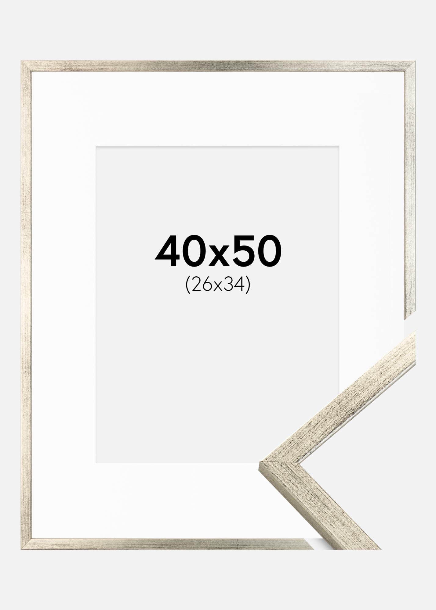 Moldura Galant Prateado 40x50 cm - Passe-partout Branco 27x35 cm