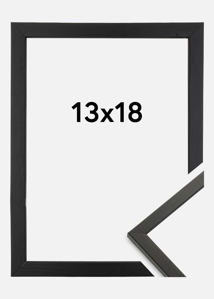 Moldura preta e elegante feita de madeira com uma moldura que mede apenas 13 mm de largura e 13 mm de profundidade. Essas dimensões fazem com que a moldura pareça estável, mas ao mesmo tempo seja fina e bonita. Uma moldura preta é um clássico que emoldura e realça elegantemente a sua imagem. A moldura possui vidro autêntico. Na parte de trás da moldura, há suportes de parede para pendurar tanto na vertical quanto na horizontal.