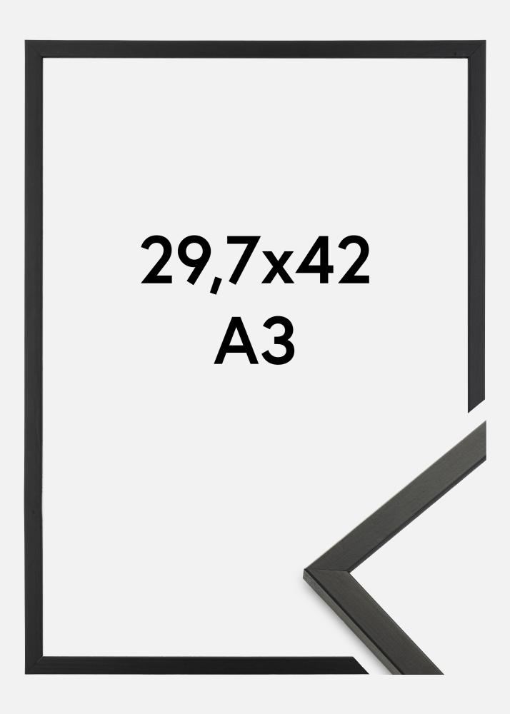 Moldura preta e elegante feita de madeira com uma moldura que mede apenas 13 mm de largura e 13 mm de profundidade. Essas dimensões fazem com que a moldura pareça estável, mas ao mesmo tempo seja fina e bonita. Uma moldura preta é um clássico que emoldura e realça elegantemente a sua imagem. A moldura possui vidro autêntico. Na parte de trás da moldura, há suportes de parede para pendurar tanto na vertical quanto na horizontal.