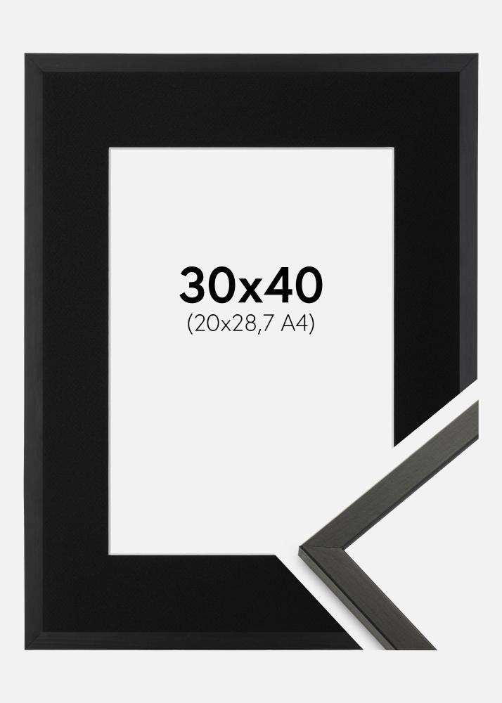 Moldura Galant Preto 30x40 cm - Passe-partout Preto 21x29,7 cm (A4)