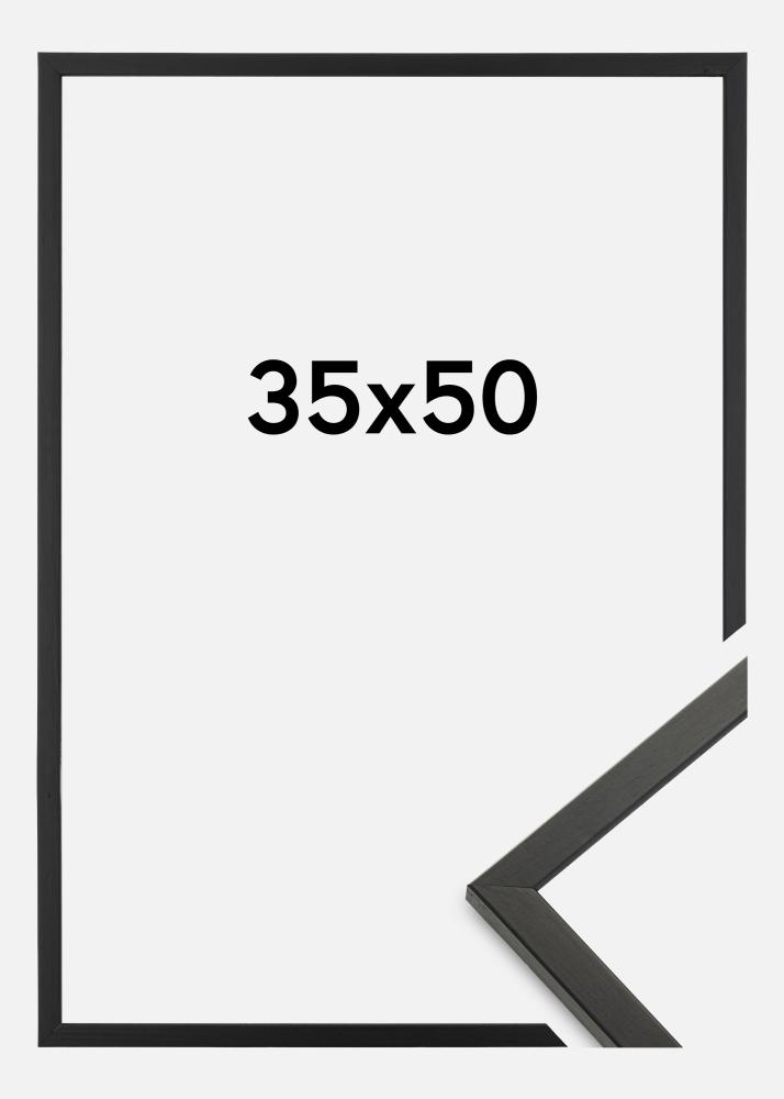 Moldura preta e elegante feita de madeira com uma moldura que mede apenas 13 mm de largura e 13 mm de profundidade. Essas dimensões fazem com que a moldura pareça estável, mas ao mesmo tempo seja fina e bonita. Uma moldura preta é um clássico que emoldura e realça elegantemente a sua imagem. A moldura possui vidro autêntico. Na parte de trás da moldura, há suportes de parede para pendurar tanto na vertical quanto na horizontal.