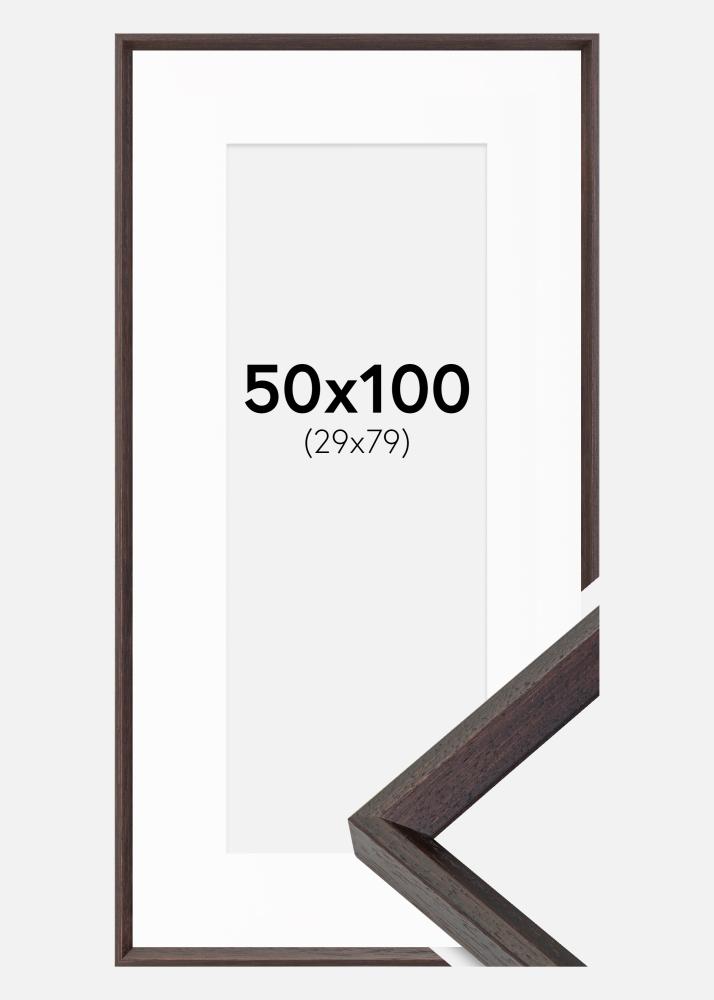 Moldura Globe Espresso 50x100 cm - Passe-partout Branco 30x80 cm