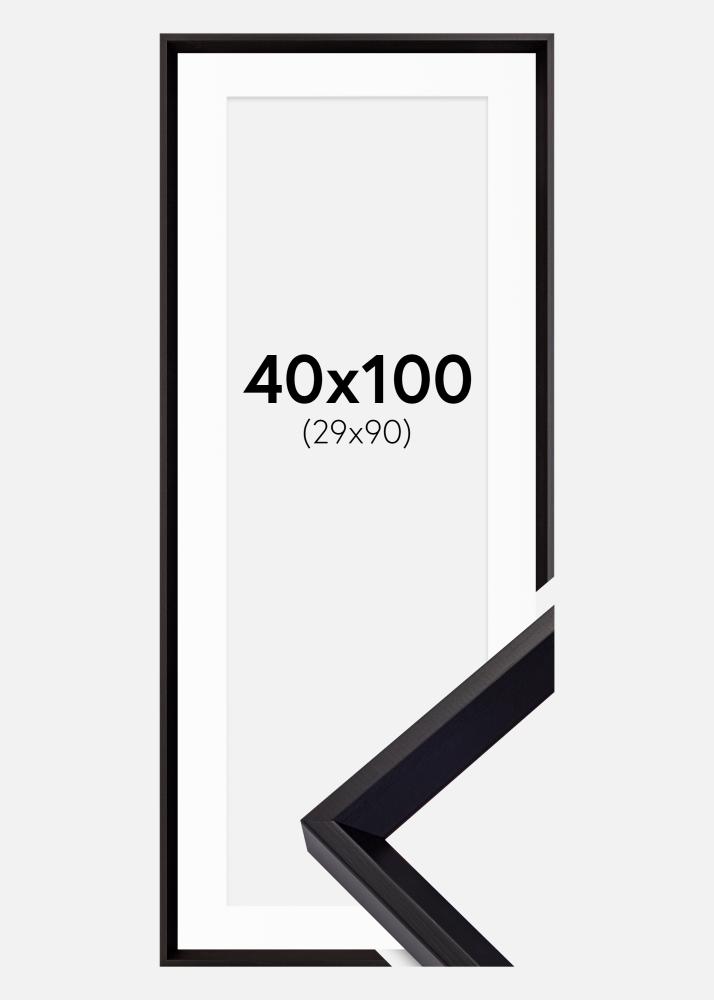 Moldura Globe Preto 40x100 cm - Passe-partout Branco 30x91 cm