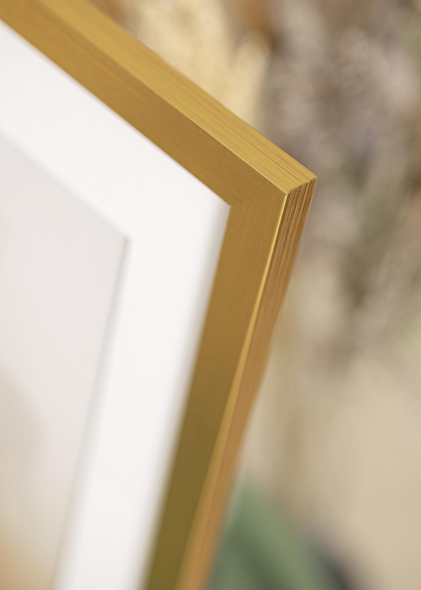 Uma moldura dourada elegante quase nunca está errada, especialmente uma variante um pouco mais larga que, combinada com um passe-partout, transforma sua imagem em uma bela tela que gosta de mostrar. A série de molduras Gold Wood é uma das nossas séries de molduras das quais estamos especialmente orgulhosos e que também está disponível numa enorme variedade de tamanhos. Perfeito quando quer criar belas galerias de parede. Além disso, o fato de que ela também está disponível em prata, branco e preto não torna as coisas piores.