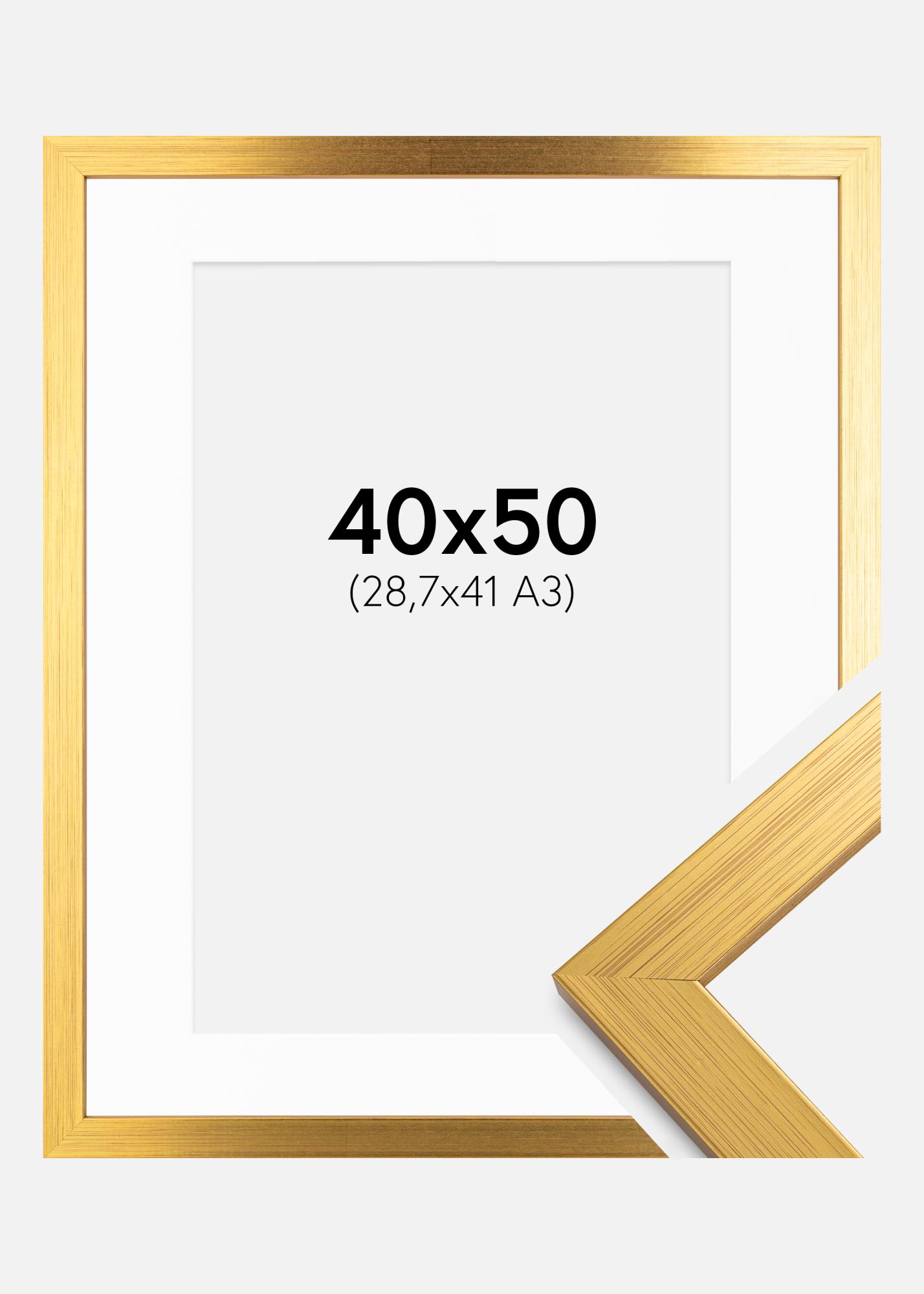 Moldura Gold Wood 40x50 cm - Passe-partout Branco 29,7x42 cm (A3)