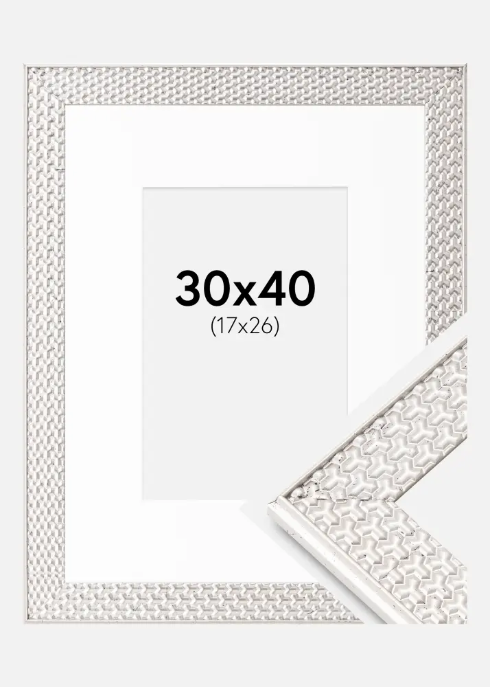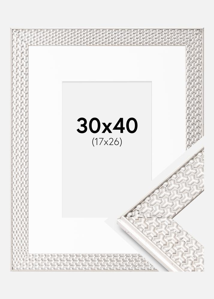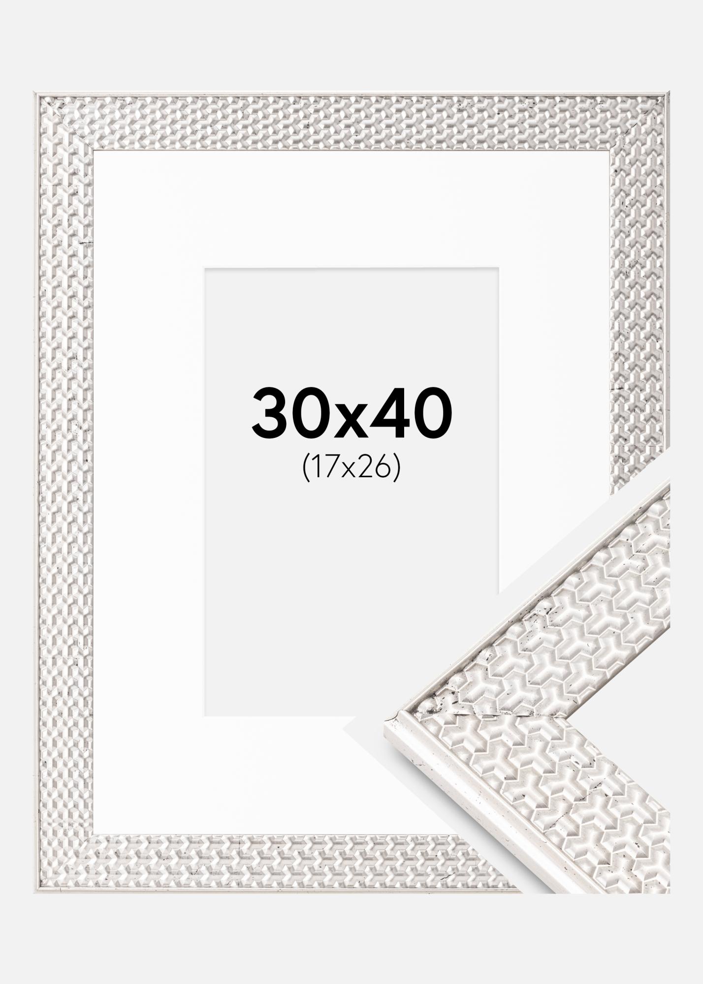 Moldura Grace Prateado 30x40 cm - Passe-partout Branco 18x27 cm