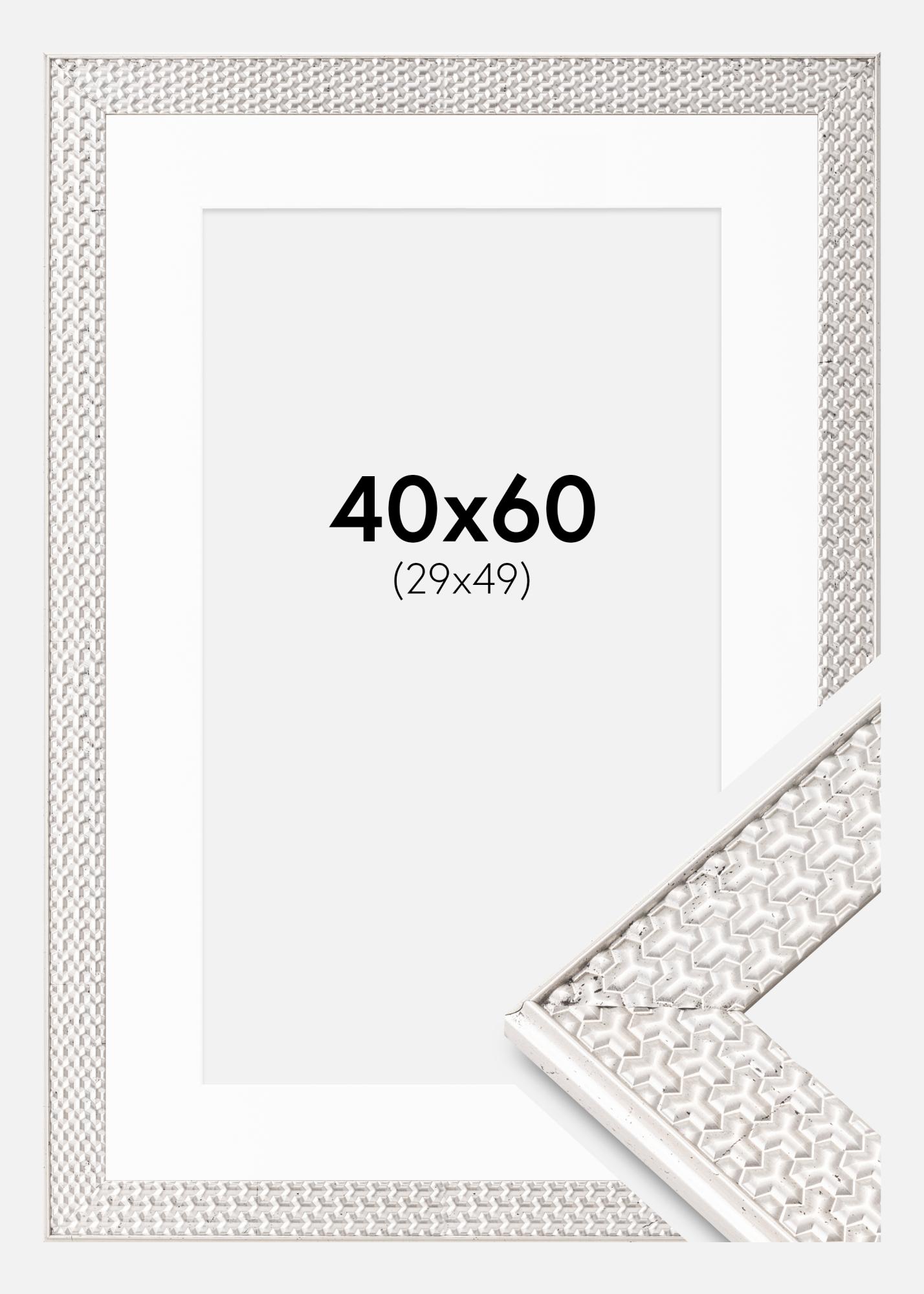 Moldura Grace Prateado 40x60 cm - Passe-partout Branco 30x50 cm