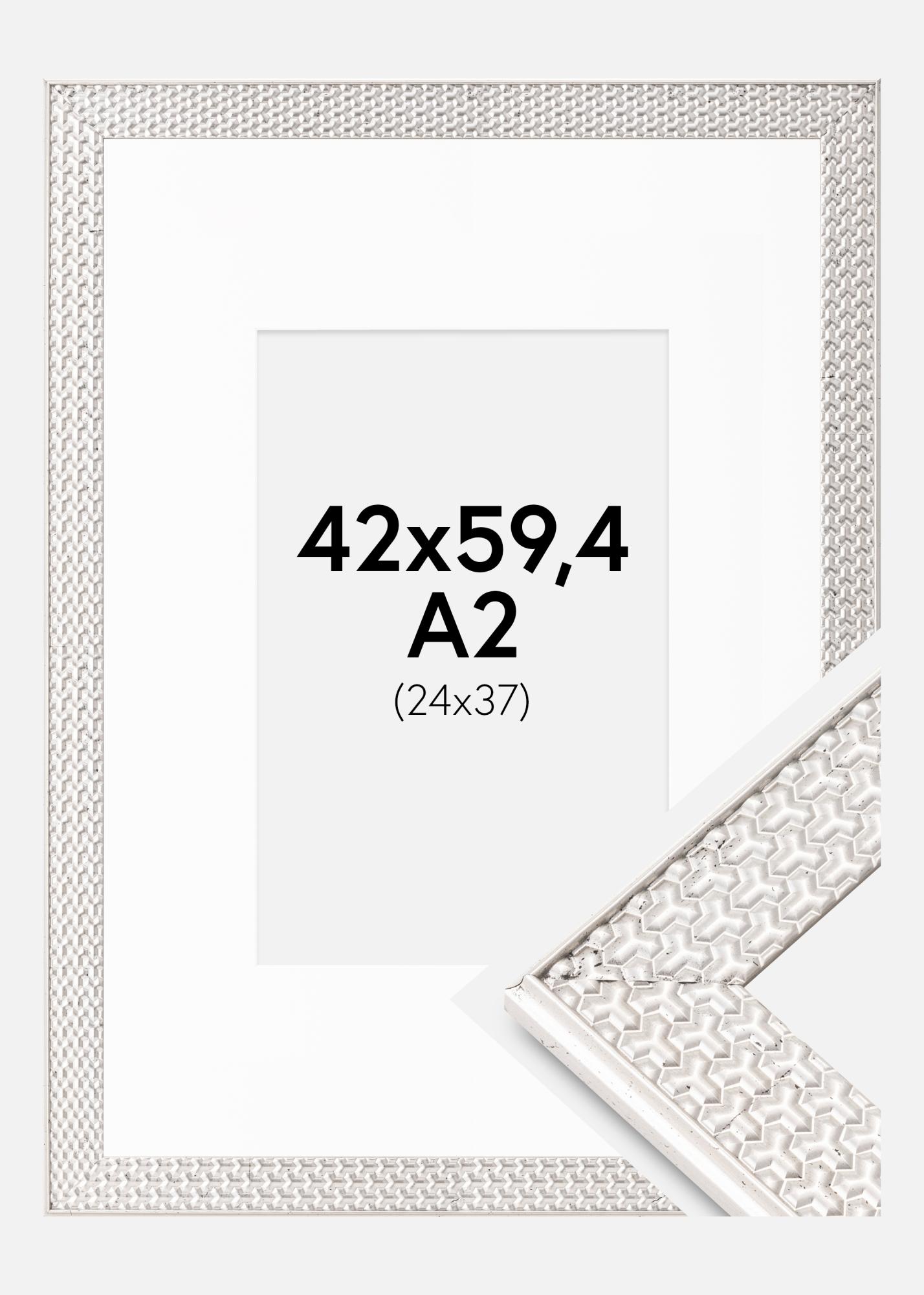 Moldura Grace Prateado 42x59,4 cm (A2) - Passe-partout Branco 25x38 cm