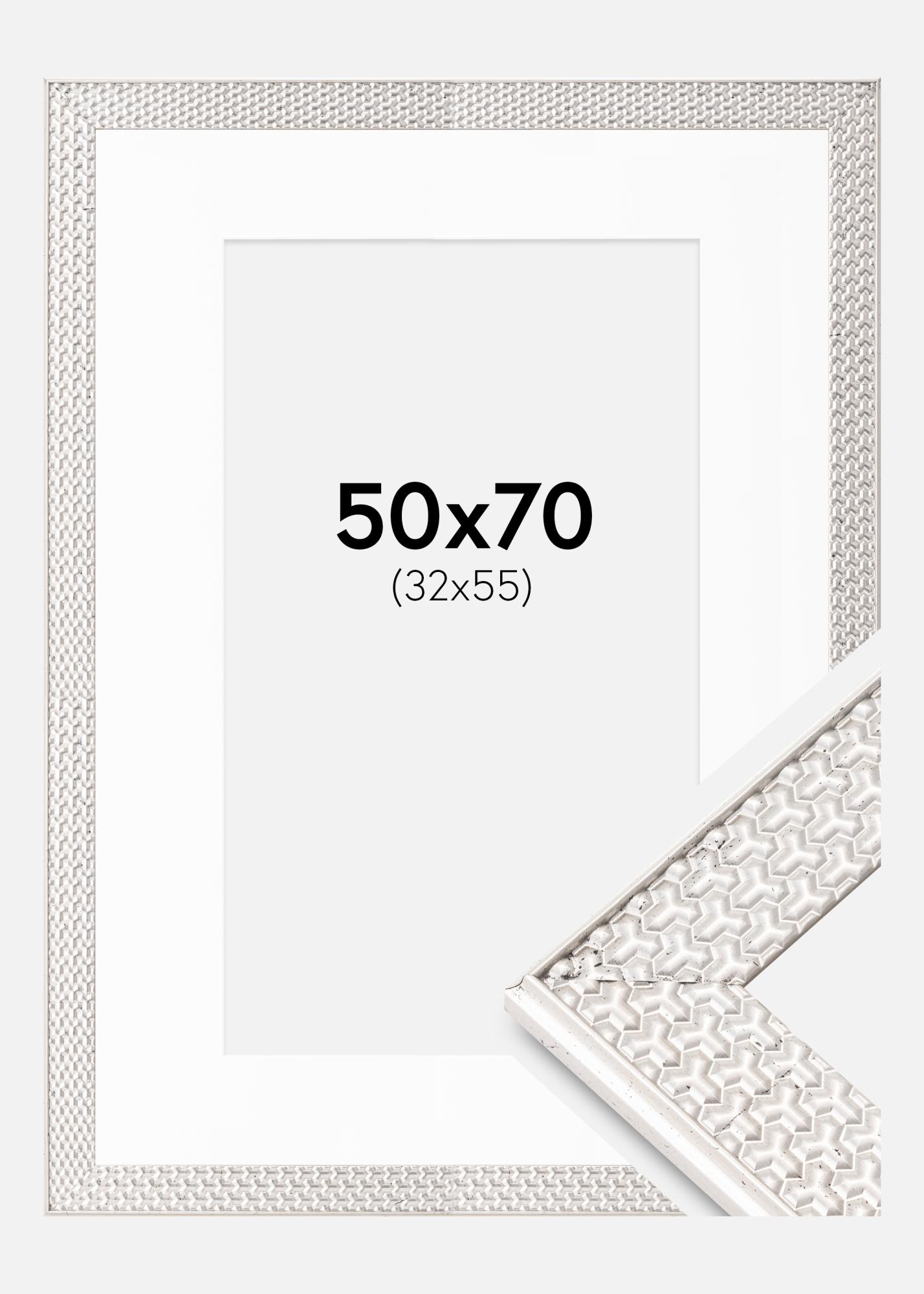 Moldura Grace Prateado 50x70 cm - Passe-partout Branco 33x56 cm