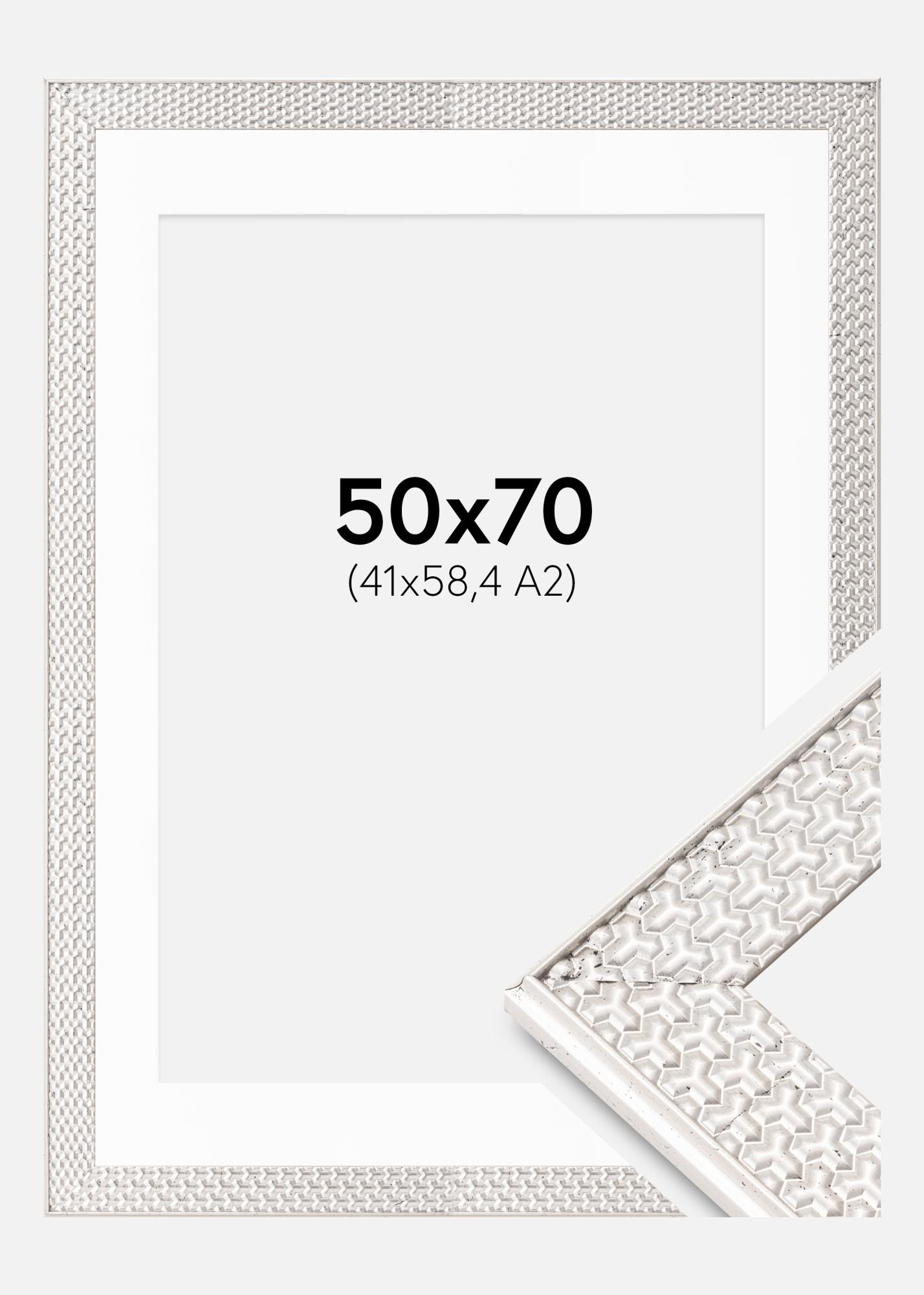 Moldura Grace Prateado 50x70 cm - Passe-partout Branco 42x59,4 cm (A2)
