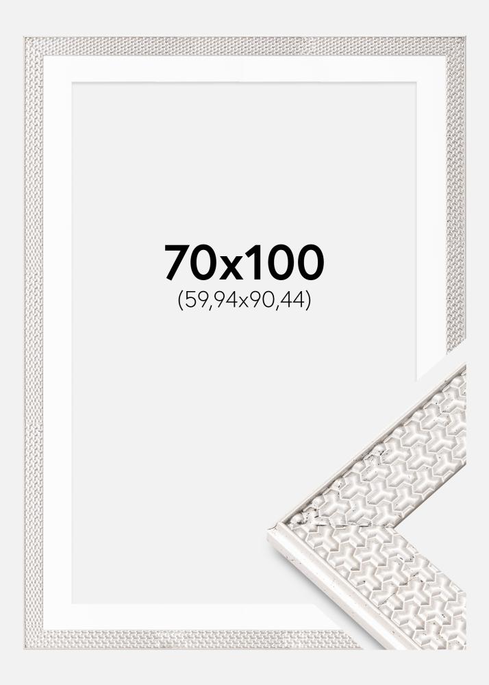 Moldura Grace Prateado 70x100 cm - Passe-partout Branco 24x36 inches