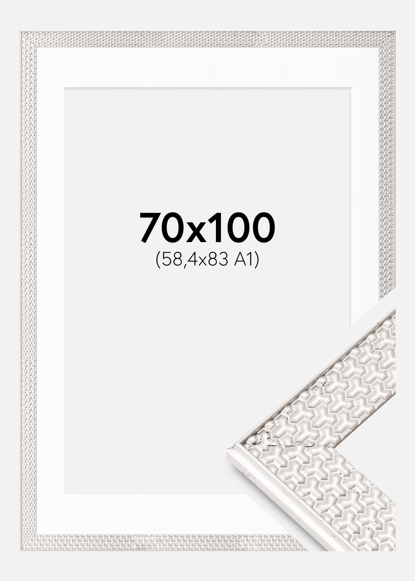 Moldura Grace Prateado 70x100 cm - Passe-partout Branco 59,4x84 cm (A1)
