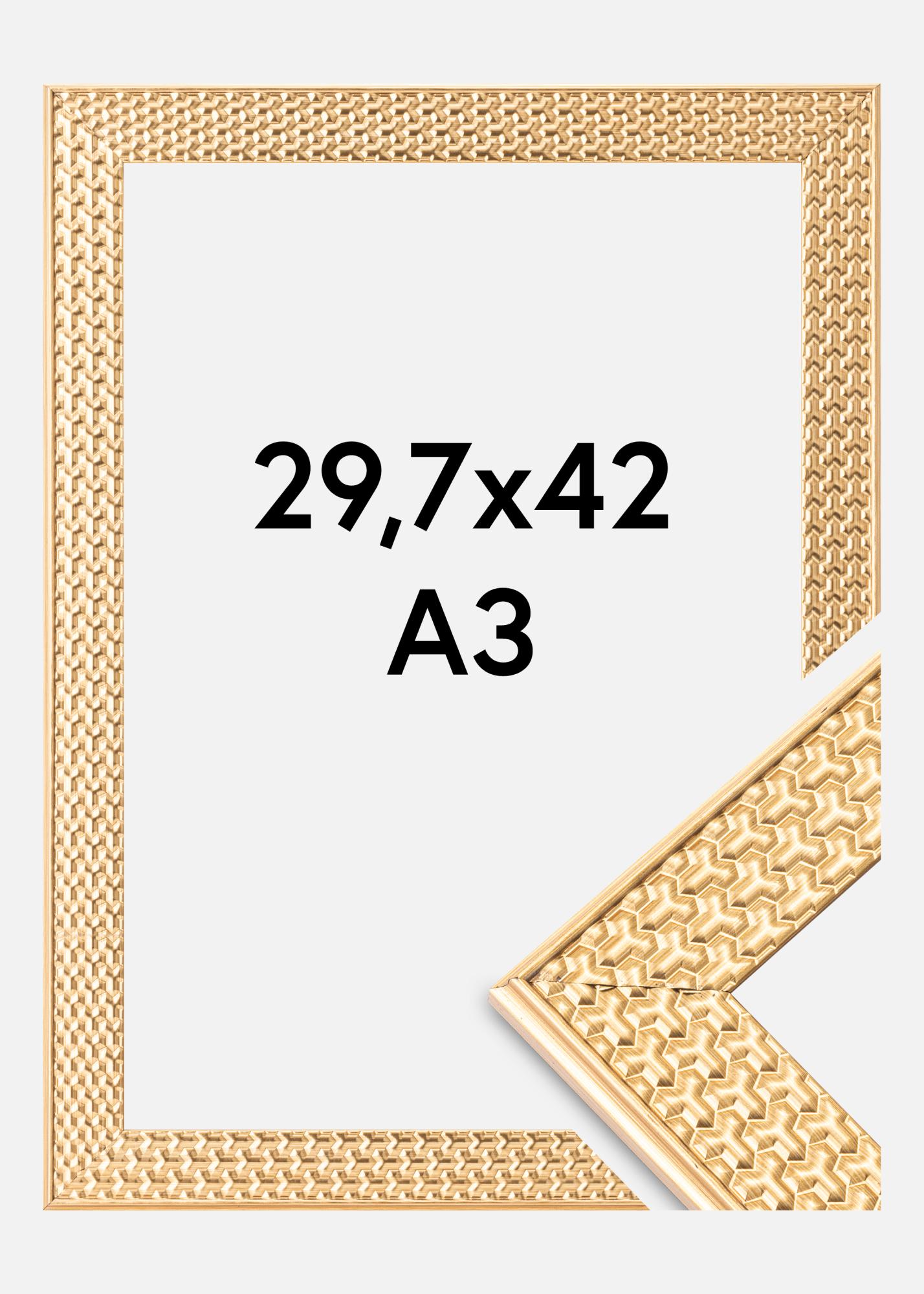 Dê um toque de elegância às suas fotos com a nossa moldura retro dourada em formato de 29,7x42 cm (A3). Esta moldura não só fornece um enquadramento protetor para suas imagens, mas também é um elemento de decoração requintado que adiciona uma sensação de luxo à sua casa. Com a sua moldura de 35 mm de largura, destaca a imagem e proporciona uma profundidade impressionante.
