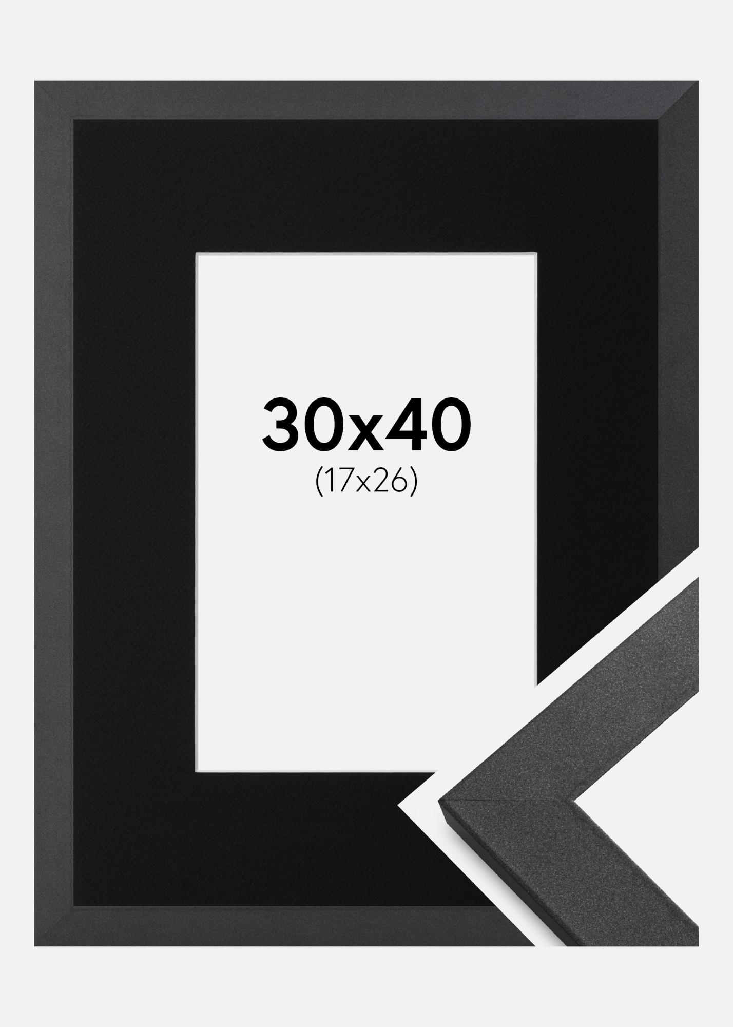 Moldura Graphite Wood 30x40 cm - Passe-partout Preto 18x27 cm
