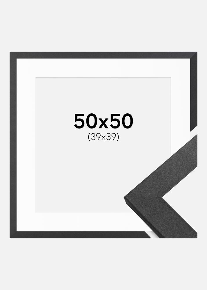 Moldura Graphite Wood 50x50 cm - Passe-partout Branco 40x40 cm