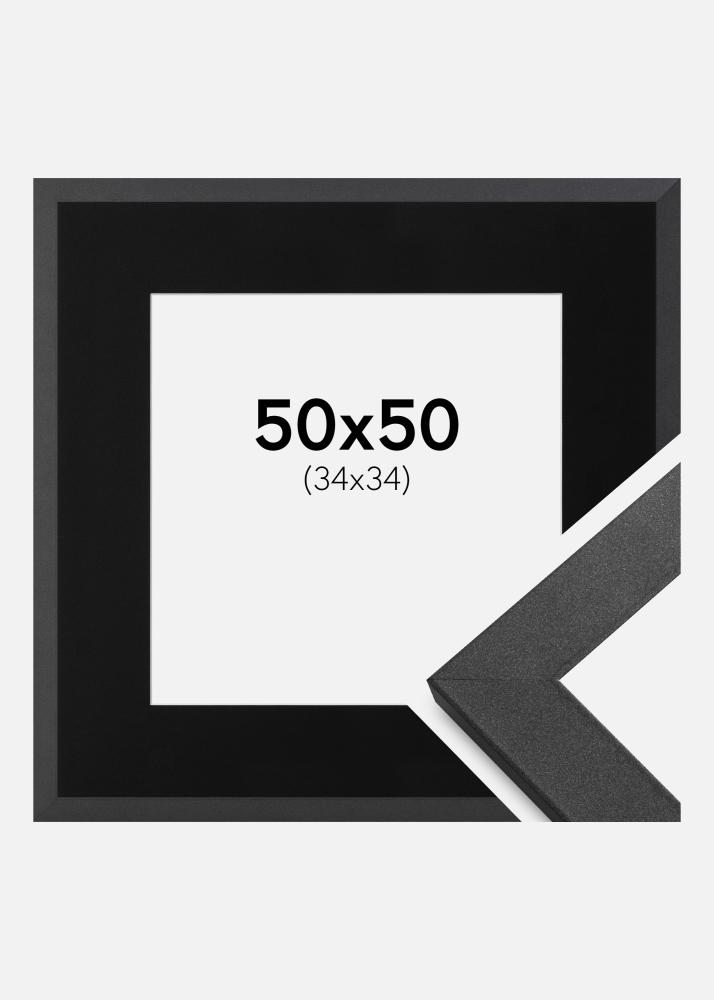 Moldura Graphite Wood 50x50 cm - Passe-partout Preto 35x35 cm
