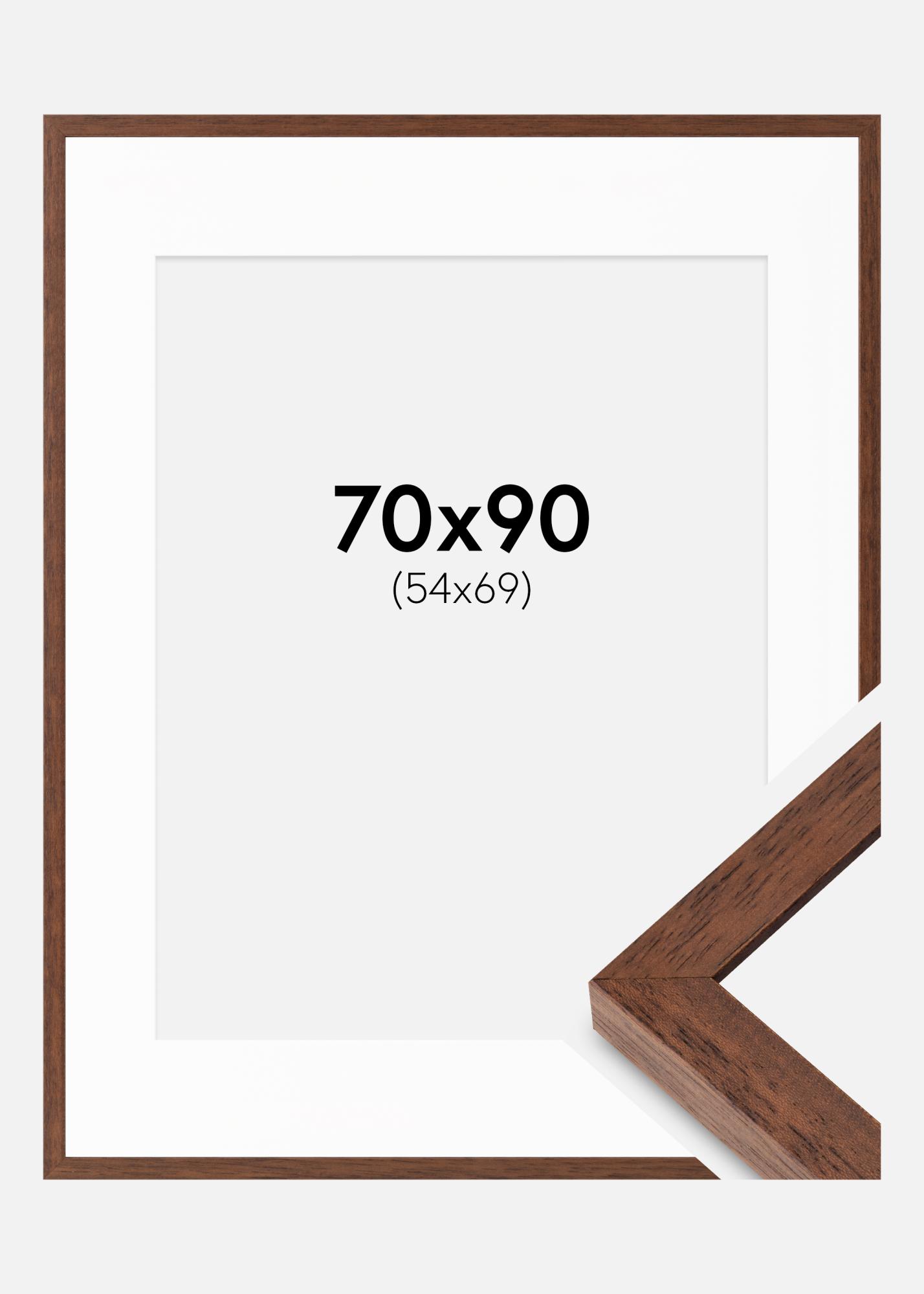 Moldura Hermes Teak 70x90 cm - passe-partout Branco 55x70 cm